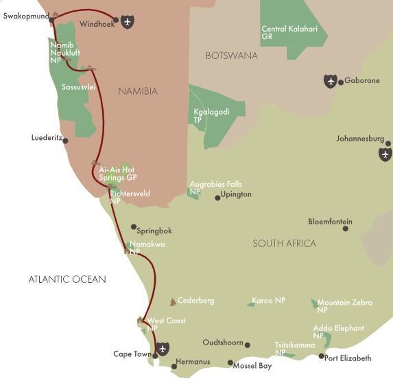 - Atlantis Dunes, Hondeklip Bay, Richtersveld Nationalpark, Fish River Canyon, Namibwüste, Swakopmund
