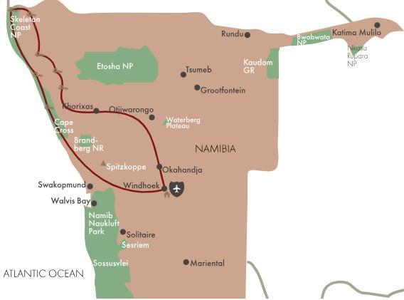 Am Flughafen werden Sie von Ihrem Guide empfangen. Fahrt nach Windhoek. Am Abend kommen alle in einem Restaurant zusammen (Abendessen auf eigene Kosten) und besprechen den Ablauf Ihrer kommenden Expedition entlang der Skelettküste.