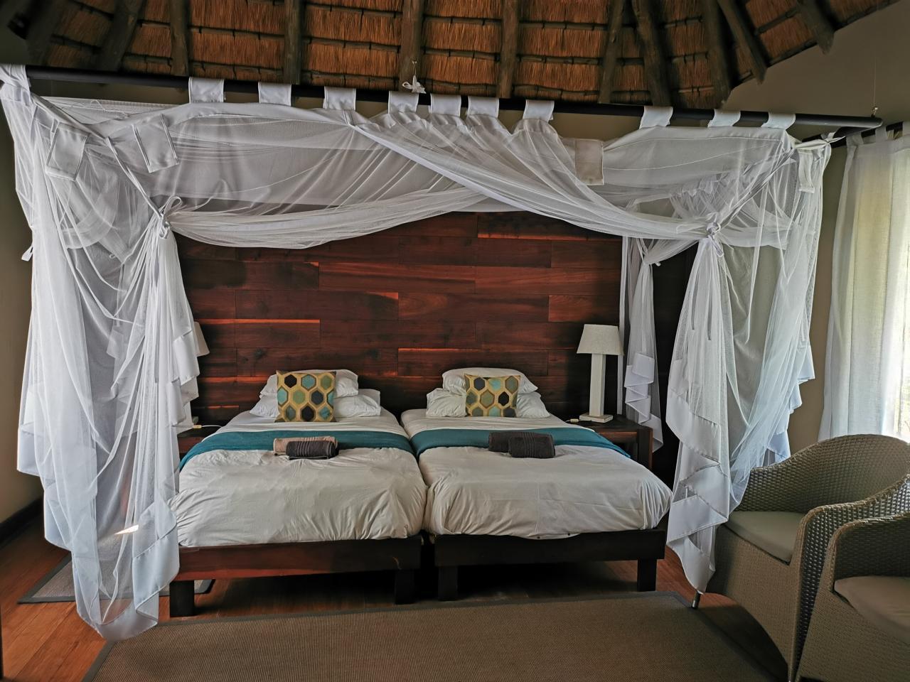 Das Divava Resort thront ganz in der Nähe der Popa Falls hoch über dem Kavango. Überraschend tropisch ist die Vegetation entlang des Flusses und in der Anlage unserer Unterkunft. Unser Zimmer ist sehr geräumig und bietet u.a. eine freistehende Badewanne mit Panoramablick auf den Kavango. Wir kräftigen uns bei einem Mittagessen im Restaurant des Resorts und entscheiden uns zu einer geführten Pirschfahrt am Nachmittag in die Buffalo Core Area des Bwabwata Nationalparks. Zuvor geht’s natürlich in den Pool. Am Abend wird uns ein 6-Gänge-Menü kredenzt. Für den Bootsausflug zum Sonnenuntergang an den Popa-Stromschnellen bleibt uns leider keine Zeit. Wir lassen uns sagen, dass sich die Popa Falls bei Niedrigwasser mehr lohnen. Aber wenn, dann sollte man sie vom Boot aus betrachten. Der Kavango-Fluss durchbricht hier ein Felsenriff.