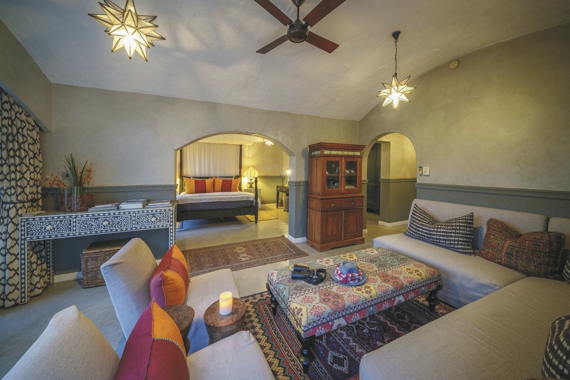 Alle 44 Zimmer, davon vier Suiten sind mit gewölbten Decken, eleganten Fensterbögen und mit geschmackvollen und handgefertigten Teakholzmöbeln eingerichtet. Sie verfügen alle über Bad/DU/WC, eine Klimaanlage, Deckenventilator, WLAN und Minibar sowie eine Terrasse bzw. Balkon mit Flussblick. Die Suiten verfügen zudem über einen privaten Plunge Pool sowie einen separaten Wohnbereich.