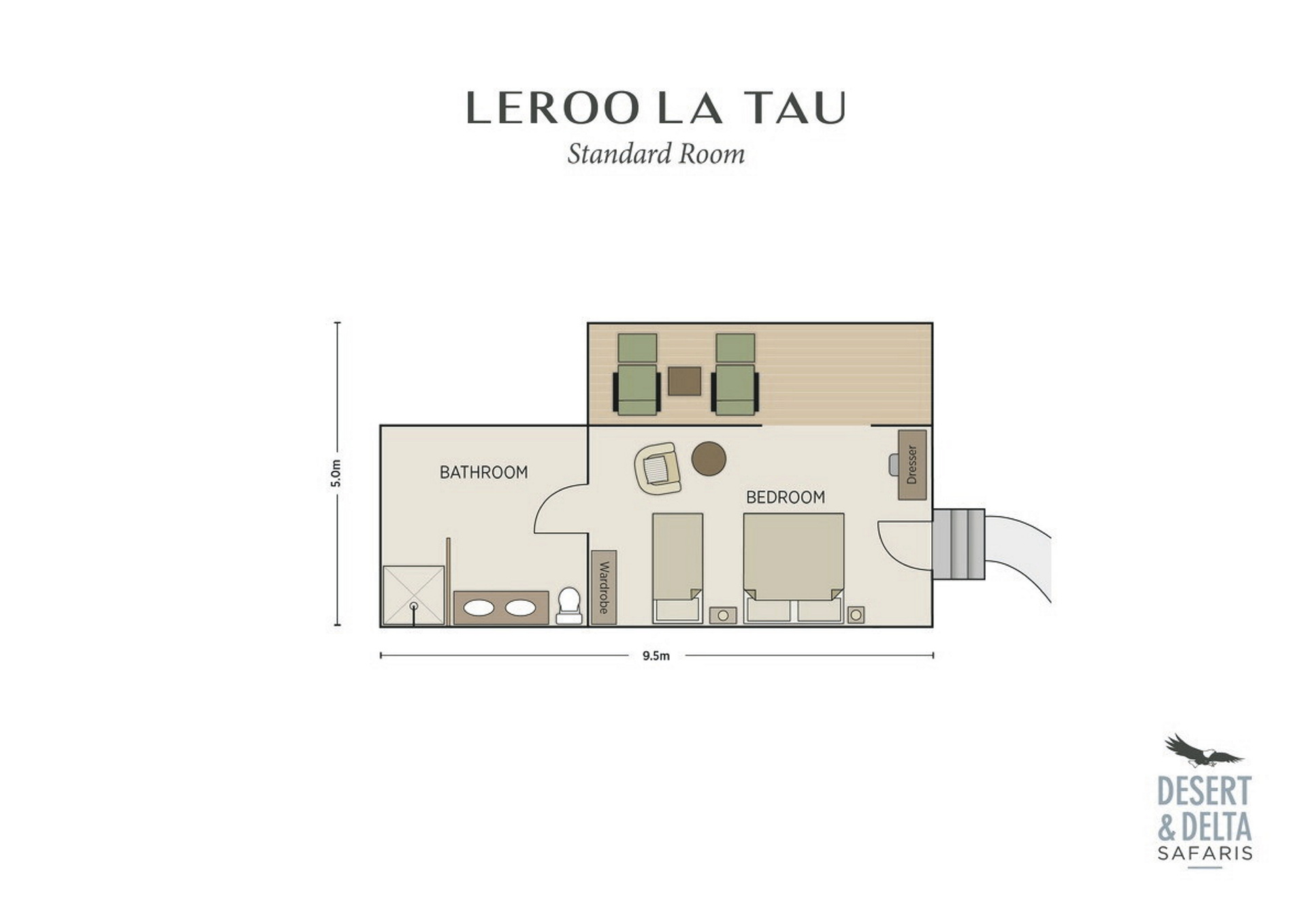 Leroo La Tau liegt am westlichen Ufer des Boteti Flusses, der die Grenze des Makgadikgadi Pans Nationalparks bildet. Maun ist ca. 2 Fahrstunden entfernt und Nata ca. 3,5 Fahrstunden.