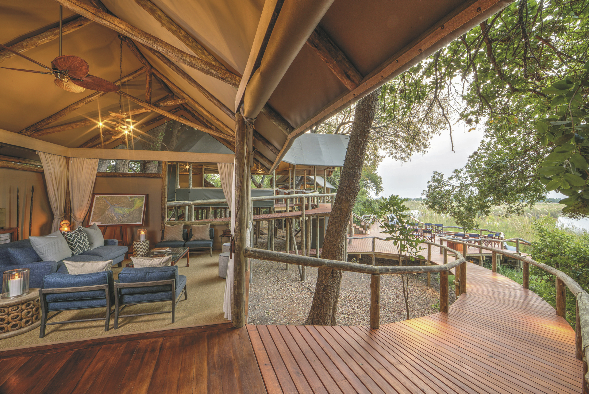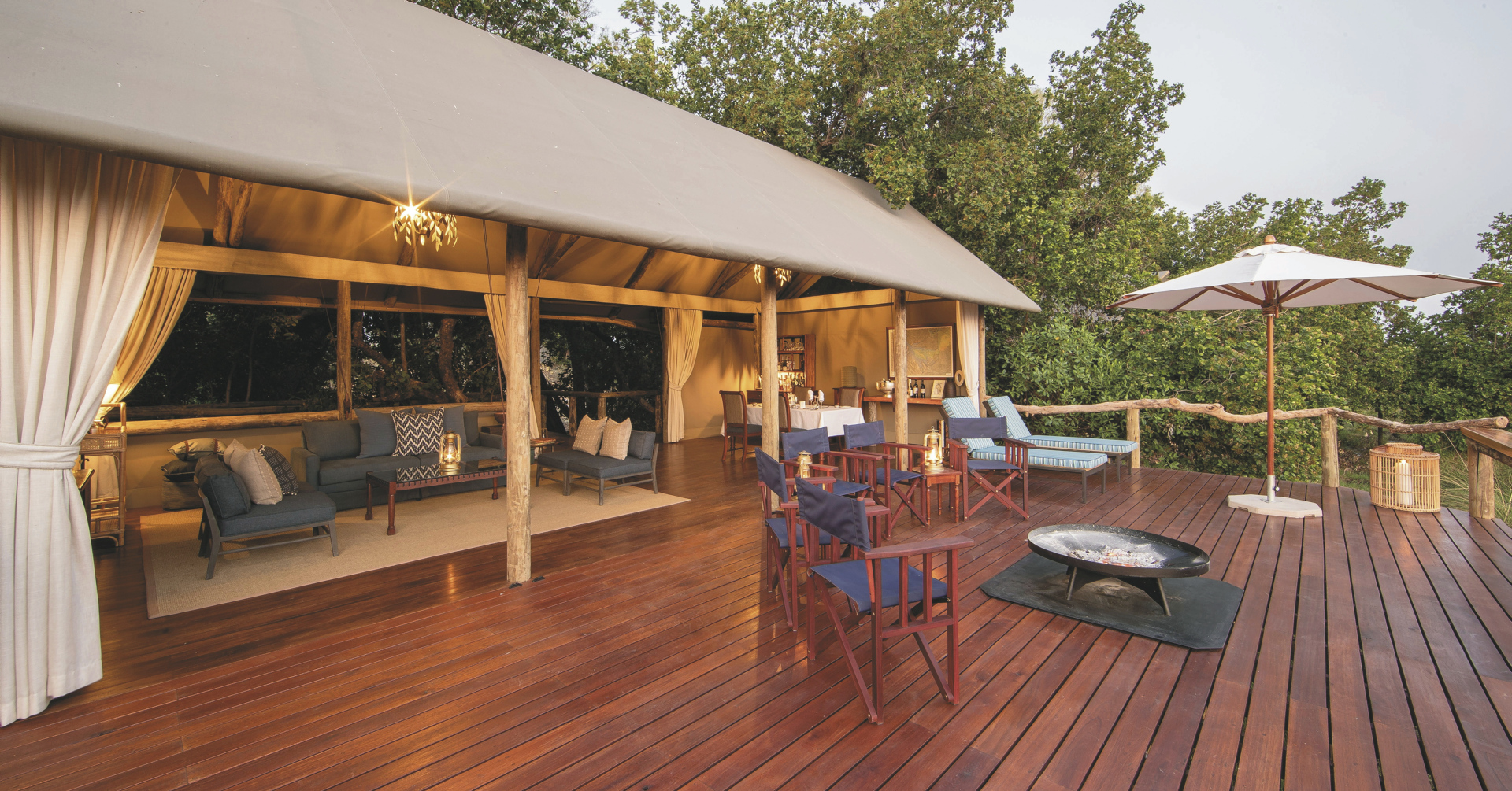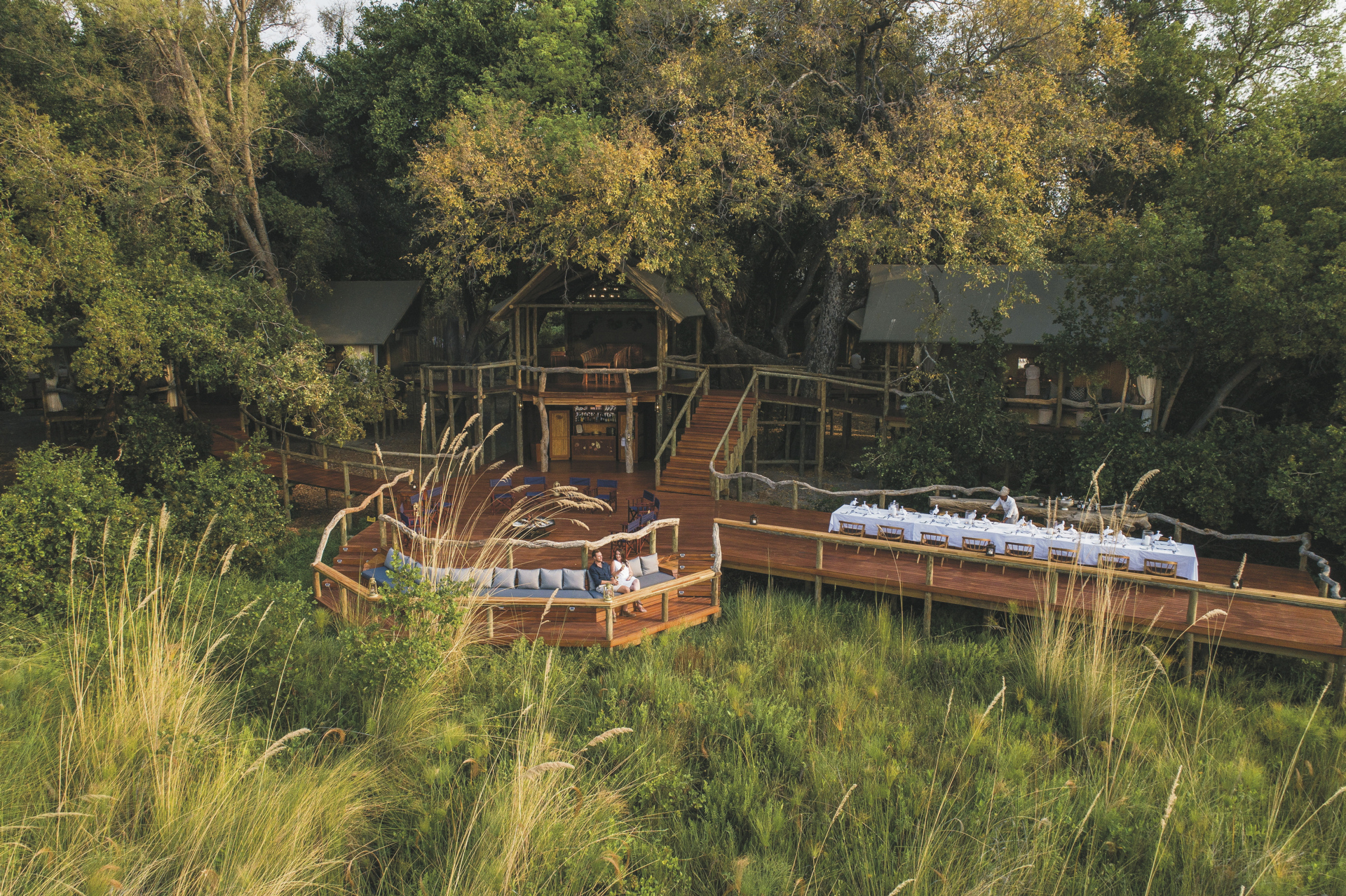 Der einzigartige Hauptbereich des Camps ist im „Baumhaus-Stil“ errichtet und besteht aus Lounges, Essbereichen (drinnen und draußen) und einem Feuerdeck - alles mit herrlichem Blick auf eine permanente Lagune und im Schatten von Ebenholz- und Mangostanbäumen. Die Zelte und der Hauptbereich bieten ein luxuriöses Erlebnis mit einem Hauch von historischem Charme. Der Pool bietet eine optimale Erfrischungsmöglichkeit an heißen Tagen und an der Feuerstelle lässt sich am Abend der Tag unter dem funkelnden Sternenhimmel Revue passieren.