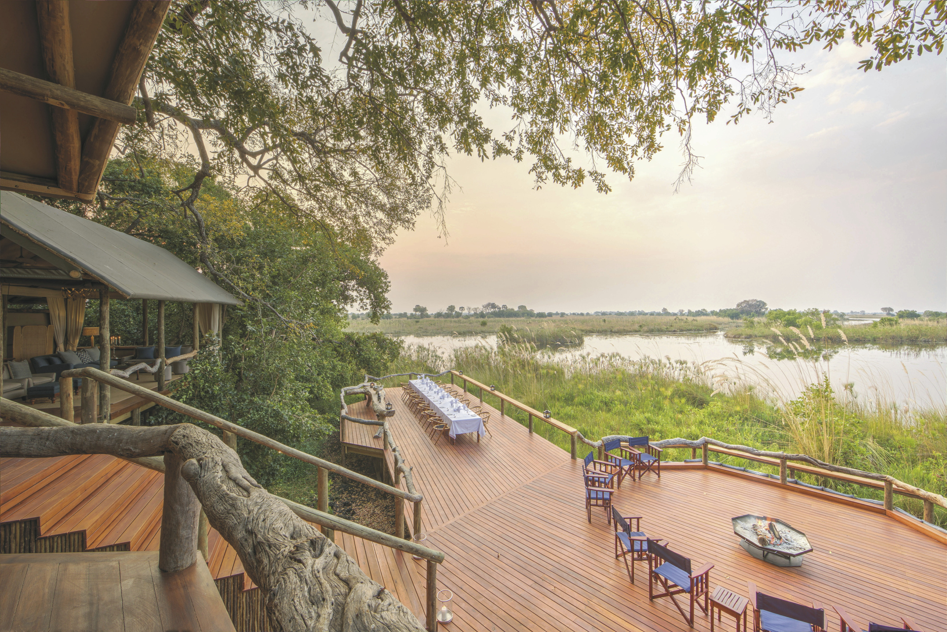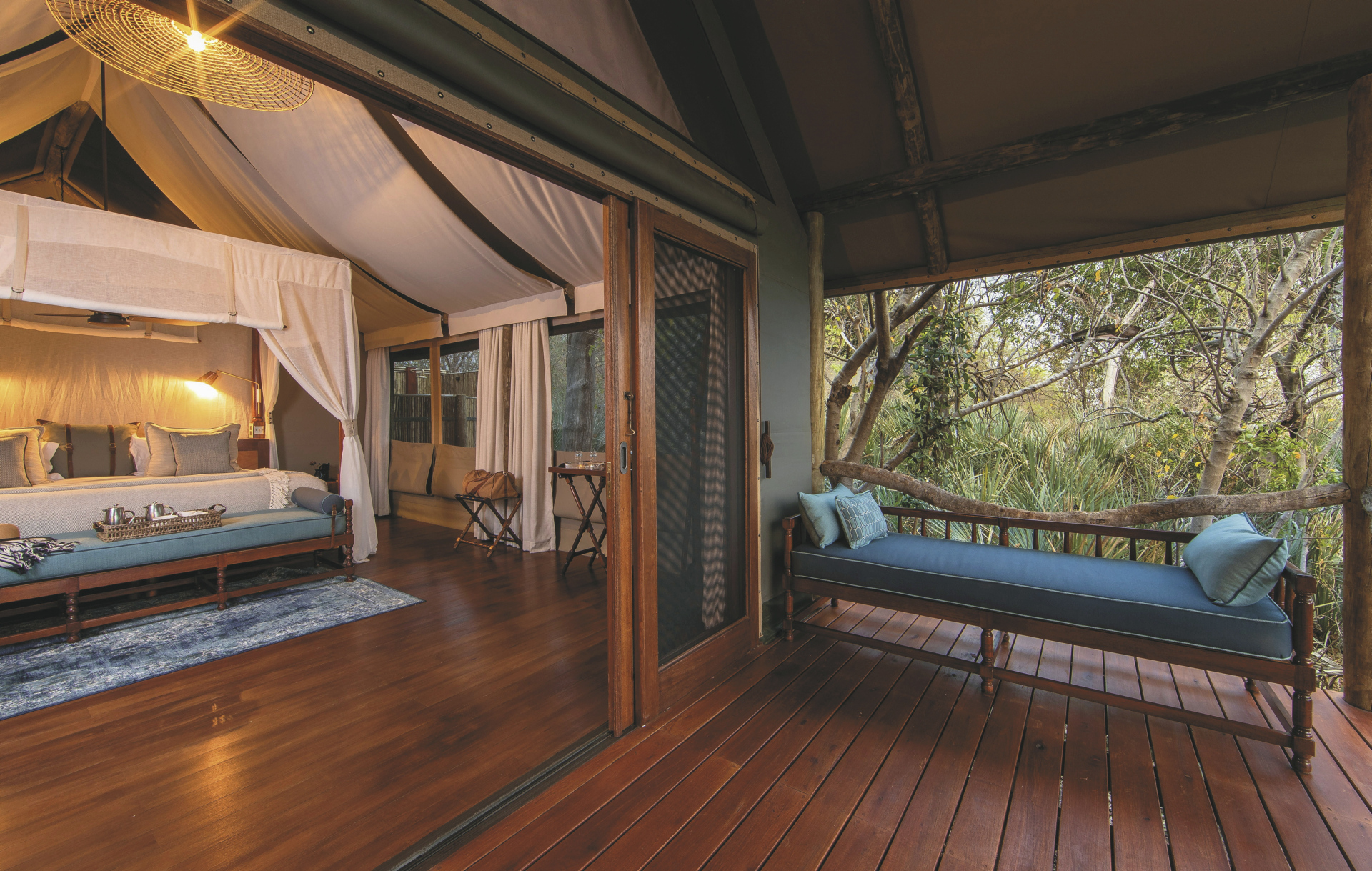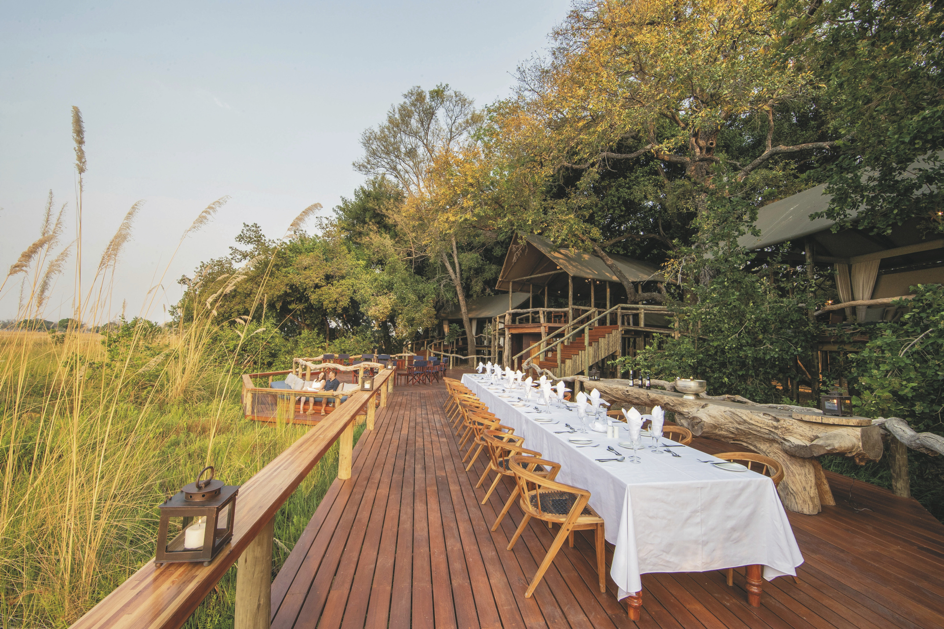 Der einzigartige Hauptbereich des Camps ist im „Baumhaus-Stil“ errichtet und besteht aus Lounges, Essbereichen (drinnen und draußen) und einem Feuerdeck - alles mit herrlichem Blick auf eine permanente Lagune und im Schatten von Ebenholz- und Mangostanbäumen. Die Zelte und der Hauptbereich bieten ein luxuriöses Erlebnis mit einem Hauch von historischem Charme. Der Pool bietet eine optimale Erfrischungsmöglichkeit an heißen Tagen und an der Feuerstelle lässt sich am Abend der Tag unter dem funkelnden Sternenhimmel Revue passieren.