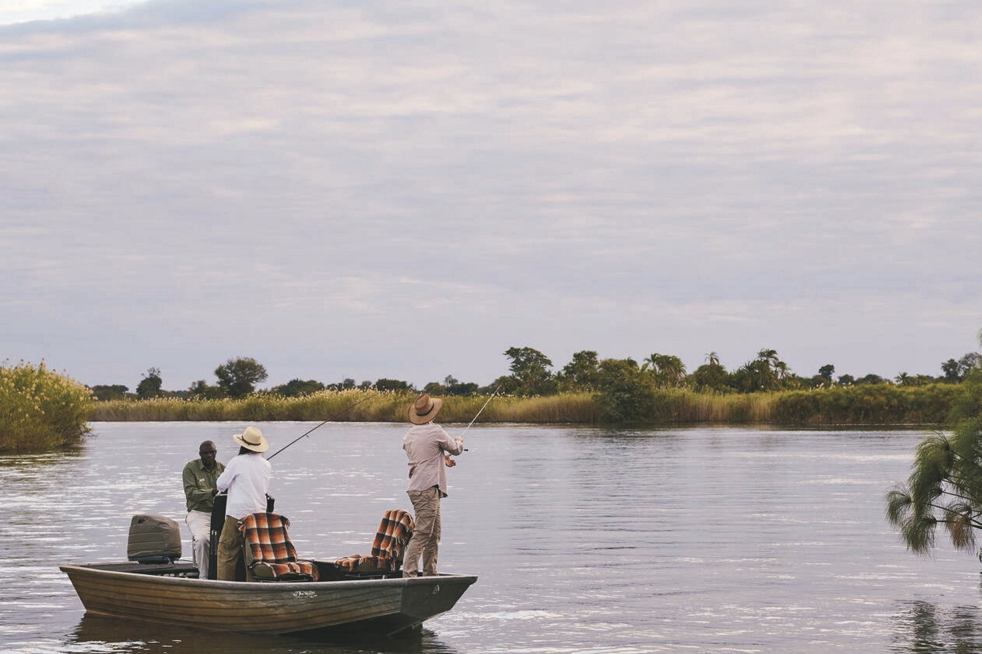 Eingeschlossene Aktivitäten: Mokoro- und Bootsfahrten, Buschwanderungen, Angeln und Besuch von Tsodilo Hills mit seinen Tausenden von Felsmalereien.