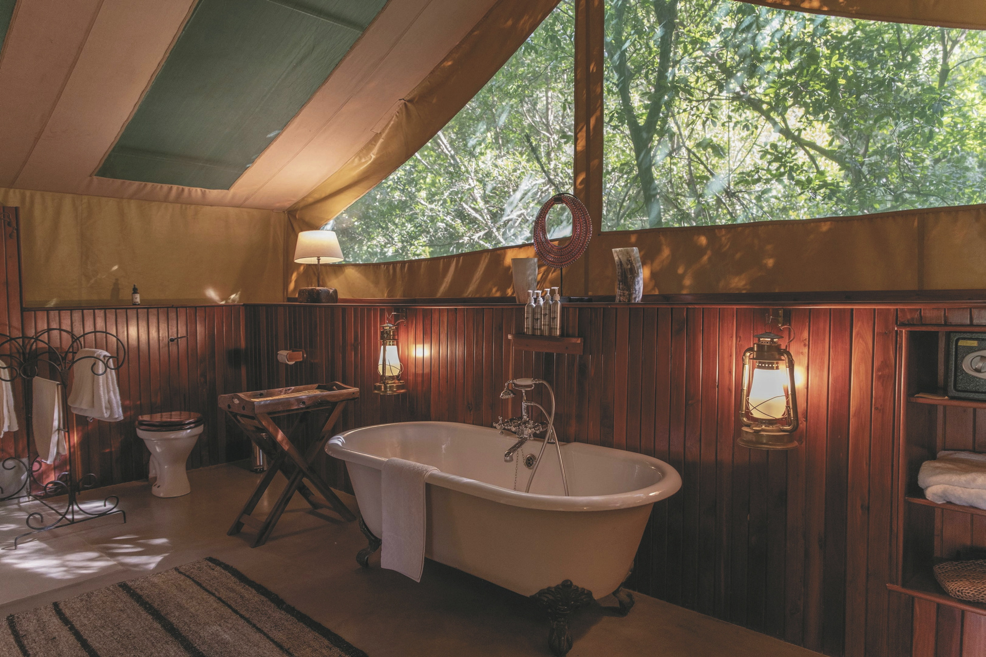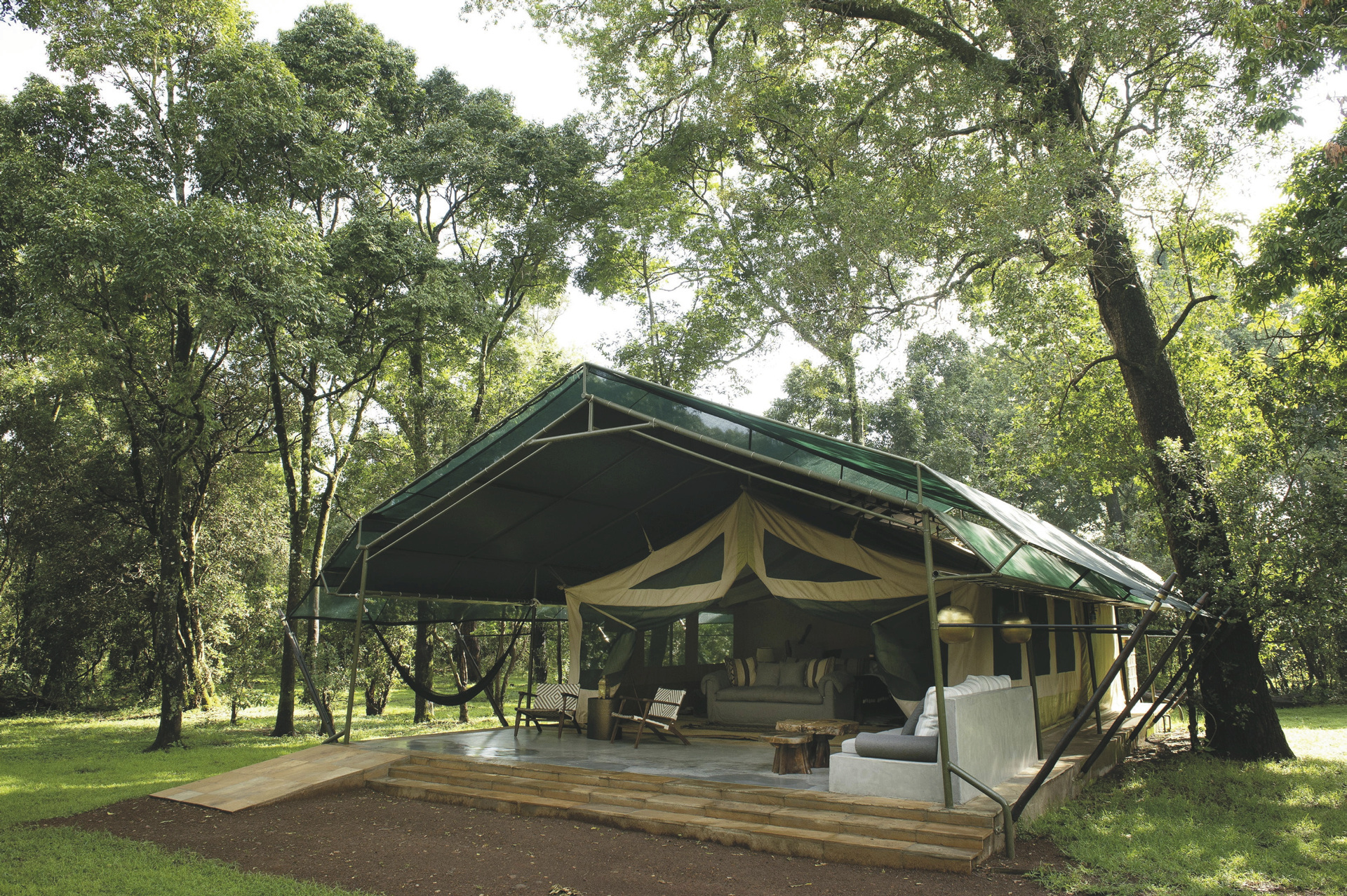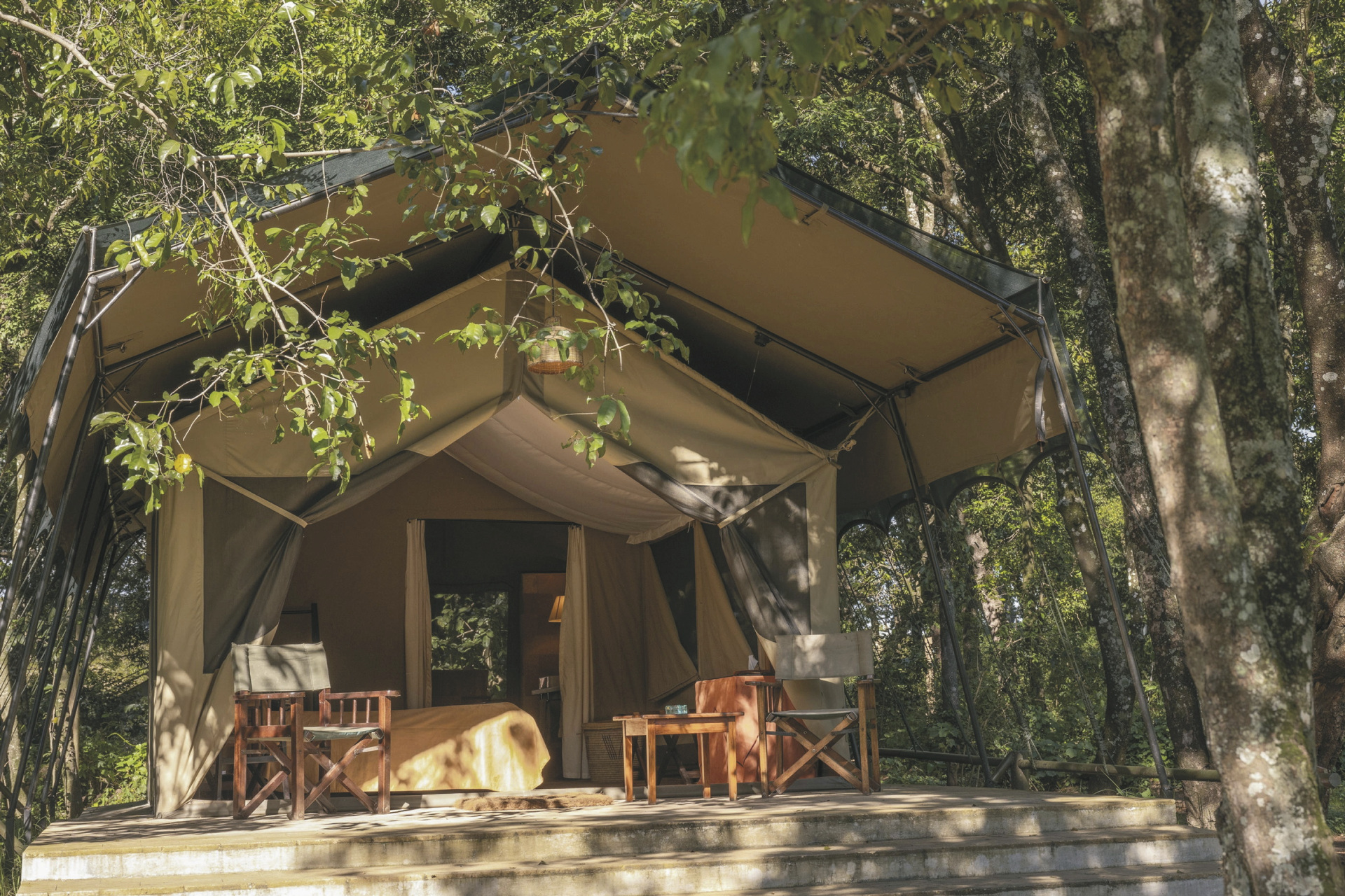 Il Moran: 10 geräumige Safarizelte mit extra großem Bett aus Olivenholz, viktorianischem Bad und Veranda. Sie stehen versteckt unter uralten Bäumen und säumen die Ufer des Mara Flusses.