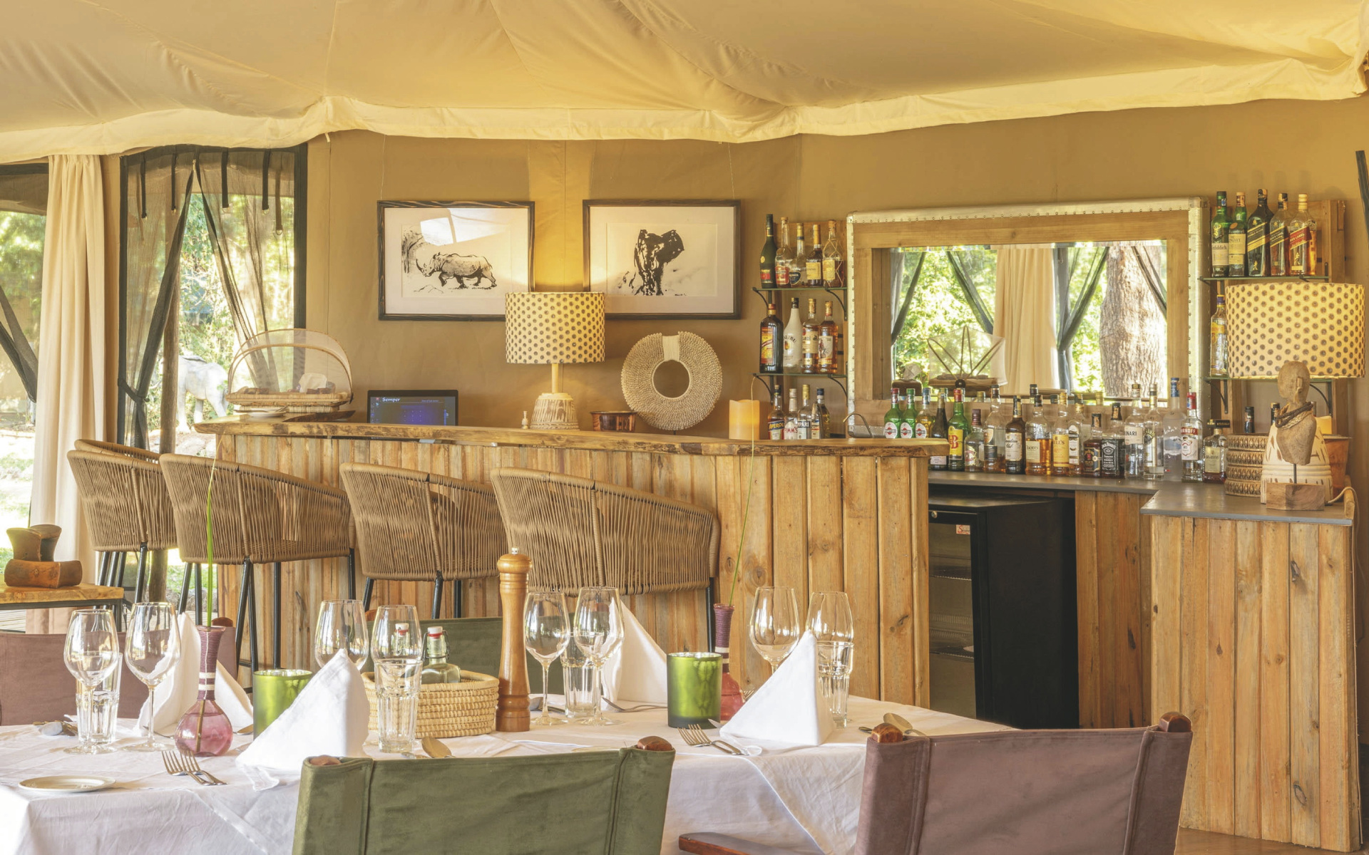 Governors' Camp: 25 Safarizelte, davon 8 Zelte für Familien und 1 Suite. All mit Veranda zum Fluss oder zur Savanne.