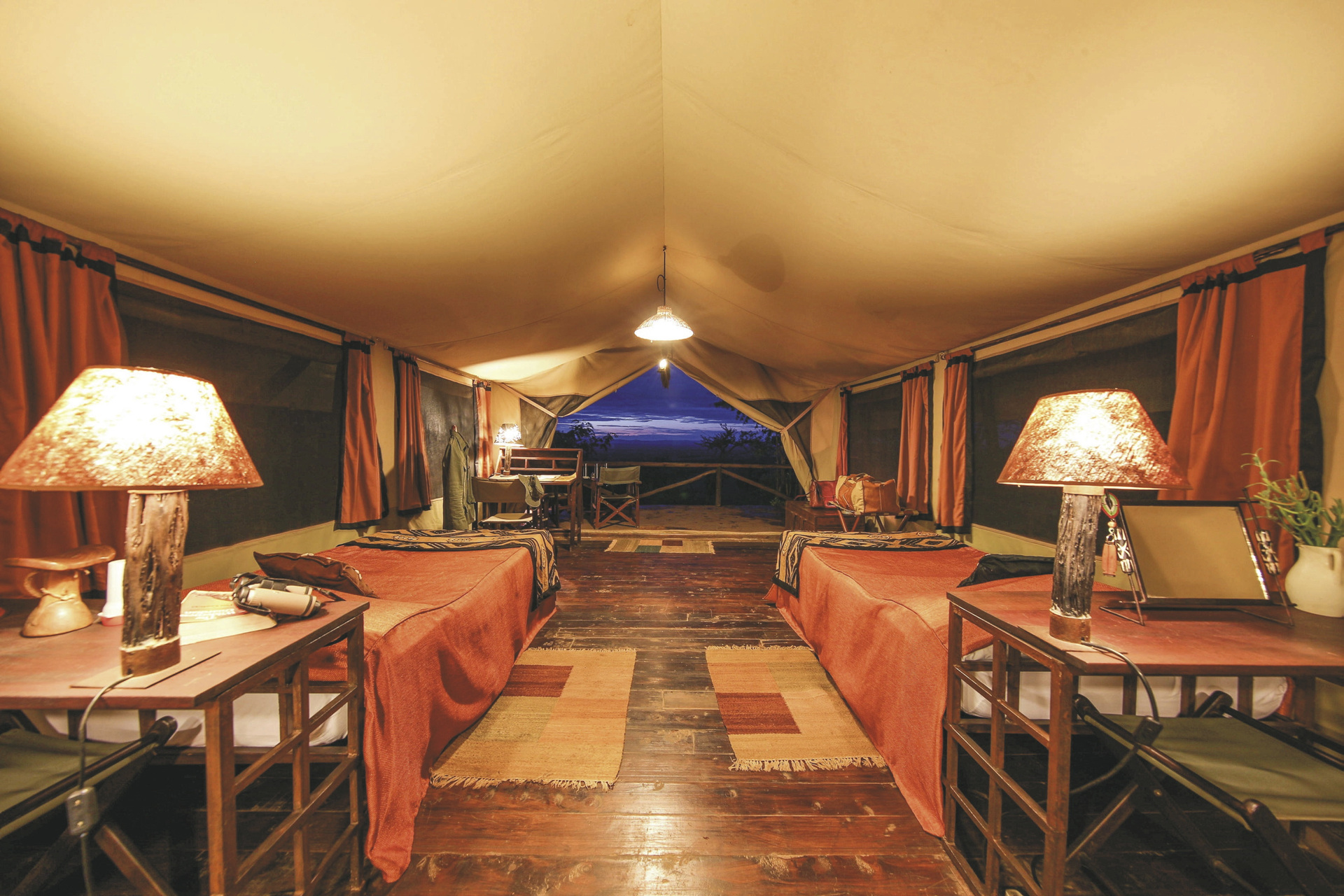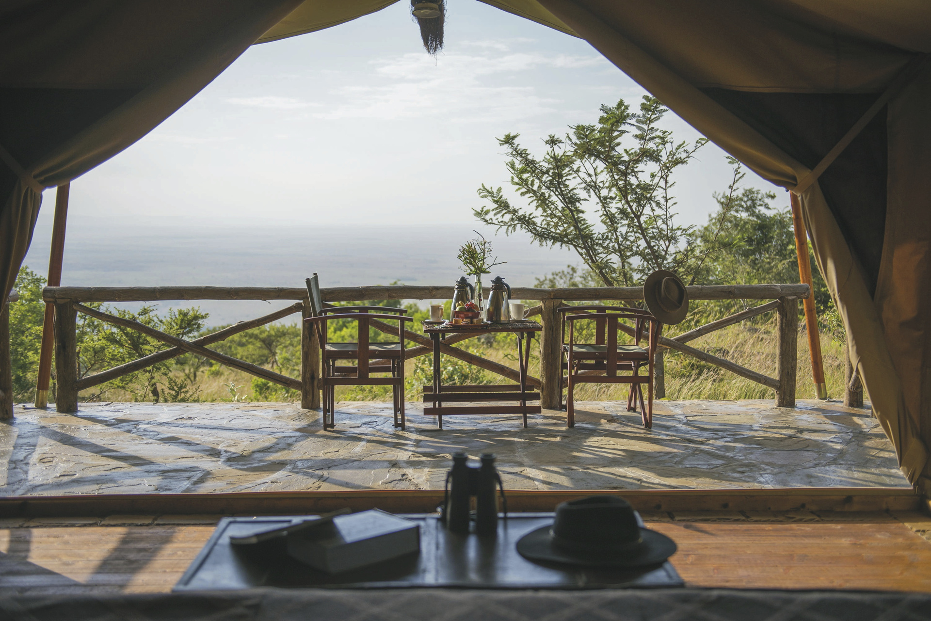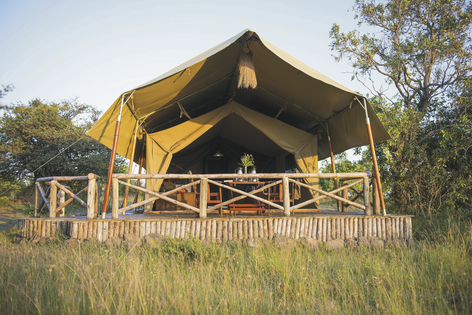 Die 15 geräumigen Safarizelte bieten klassischen Komfort in Kombination mit bester Sicht von der Terrasse auf die Masai Mara.
