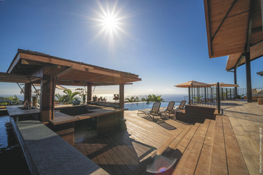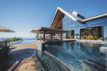 Die Anlage besticht durch eine großzügige offene Bauweise mit ausgesuchten Materialien und bietet Ruhe und Komfort sowie eine sehr gute Küche. Durch die erhöhte Lage wird ein fantastischer Blick auf den Indischen Ozean freigegeben. Die Gäste werden mit einem Restaurant mit Feuerstelle, Bar und einer Lounge mit Bibliothek und Kamin verwöhnt. Entspannung bietet der Pool mit Jacuzzi und ein Spa-Bereich. Die beiden Wanderwege auf dem Anwesen laden zu einem Spaziergang ein.
