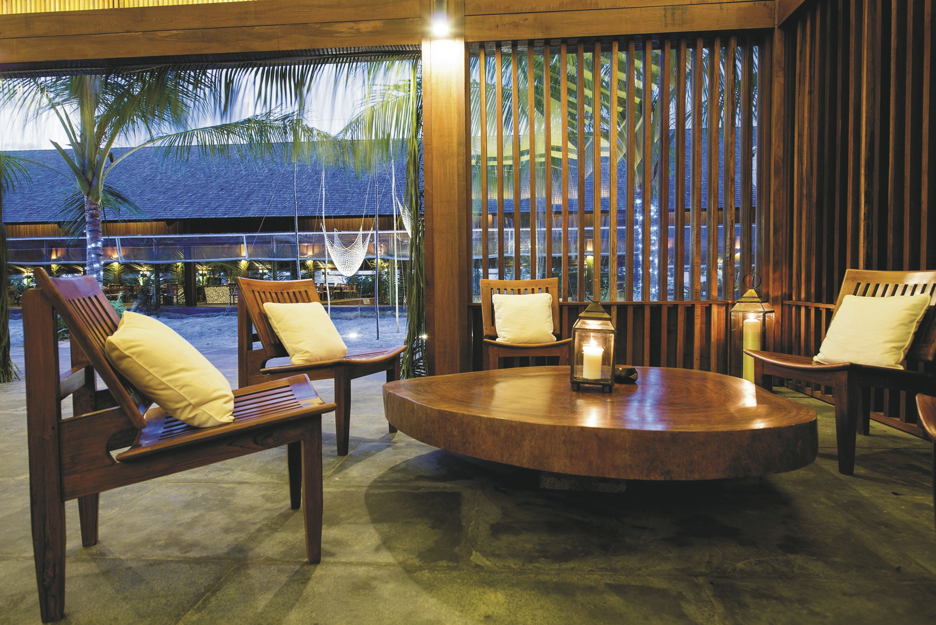 Der ökologische Aspekt spielt im Resort eine große Rolle, so wird der Strom durch Solarpanels erzeugt und das Meerwasser wird entsalzt. Im Restaurant wird der Fang von lokalen Fischern angeboten und Alkohol ist - wie auf der ganzen Insel - verboten, fast, denn der findige Besitzer hat ein altes Schiff restauriert, welches jetzt vorm Strand auf Anker liegt und als Lounge und Bar dient.