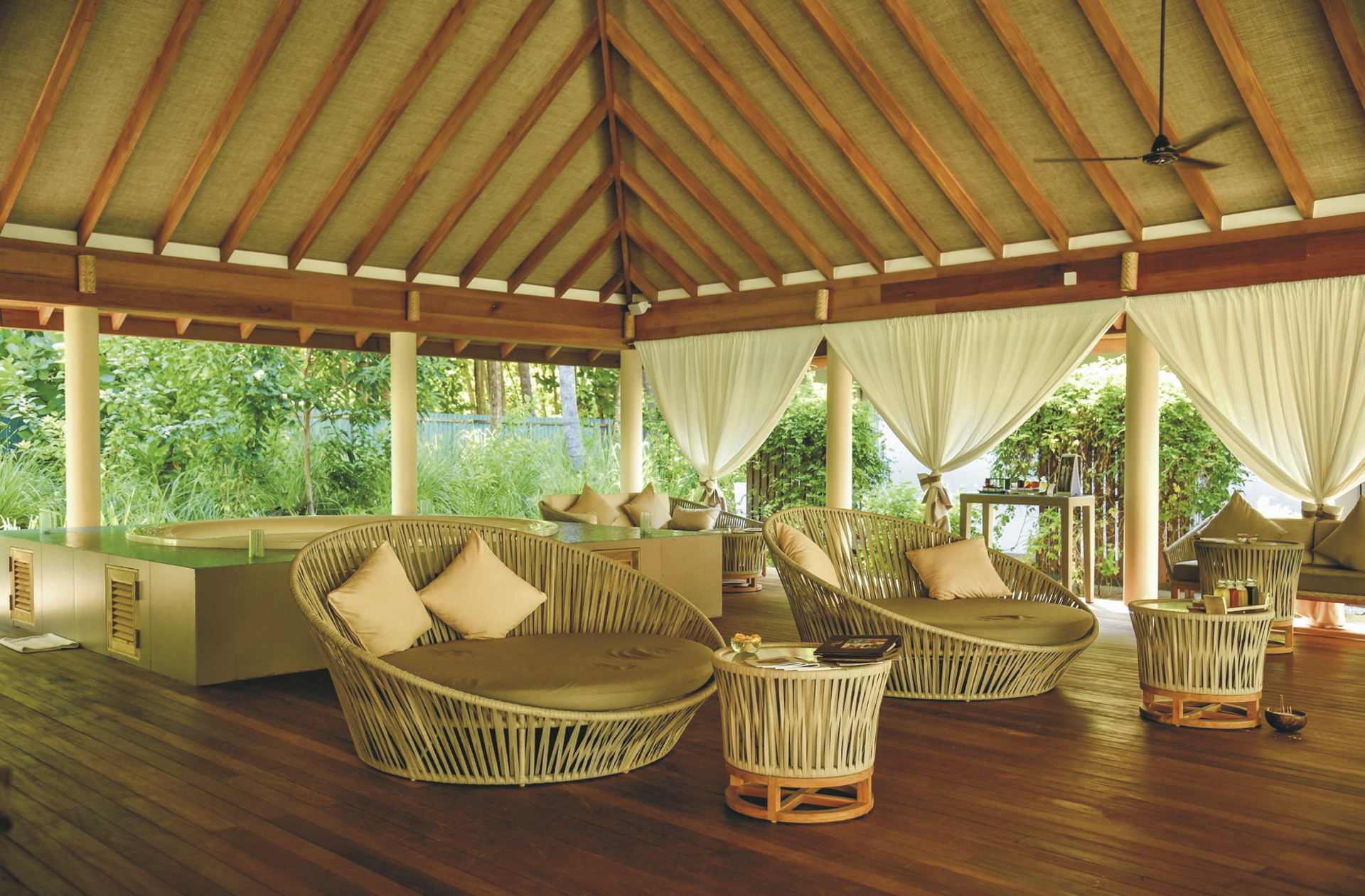 150 Villen und Suiten von der günstigen Gartenvilla (ca. 49 m²) über die Strandvillen mit Pool (ca. 68 m²) bis zu den Überwasservillen (ca. 78 m²) ist für jeden Gast etwas dabei. Alle bieten die Annehmlichkeiten eines 4-Sterne-Resorts und - je nach Kategorie - einen Pool.