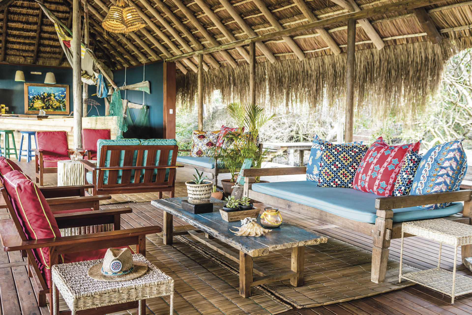 Die verschiedenen Gebäude der klassischen Strandlodge liegen verstreut zwischen den Dünen und bieten jedem Gast viel Privatsphäre. Im Hauptgebäude befinden sich eine große Lounge mit Bar, das Restaurant mit einer schönen Terrasse, der Weinkeller und kostenloses WLAN. Das Spa und die Strandbar befinden sich auf halbem Weg zum Strand. Der schöne Pool bietet herrlichen Meerblick und ist nur noch wenige Stufen vom Ozean entfernt. Der beste Platz am Abend ist die abgelegene Sundowner-Terrasse. Schwimmen können Sie auf der dem offenen Meer zugewandten Inselseite und am eher ruhigen Lagunenstrand.
