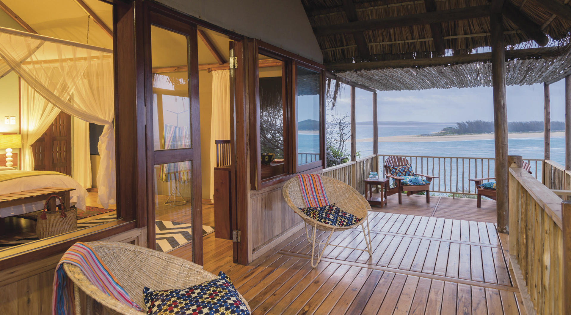 Die 10 in den Dünen gelegenen Meerblickzimmer haben beste Aussicht auf das Meer und Inhaca Island und sind im maritimen Afrika-Stil ausgestattet. Alle Zimmer verfügen über ein eigenes Bad, teils mit Außendusche; Klimaanlage, Moskitonetz, kostenloses WLAN, Telefon, Safe, Minibar, Tee-/Kaffeezubereiter, Ventilator, Fön und Terrasse.