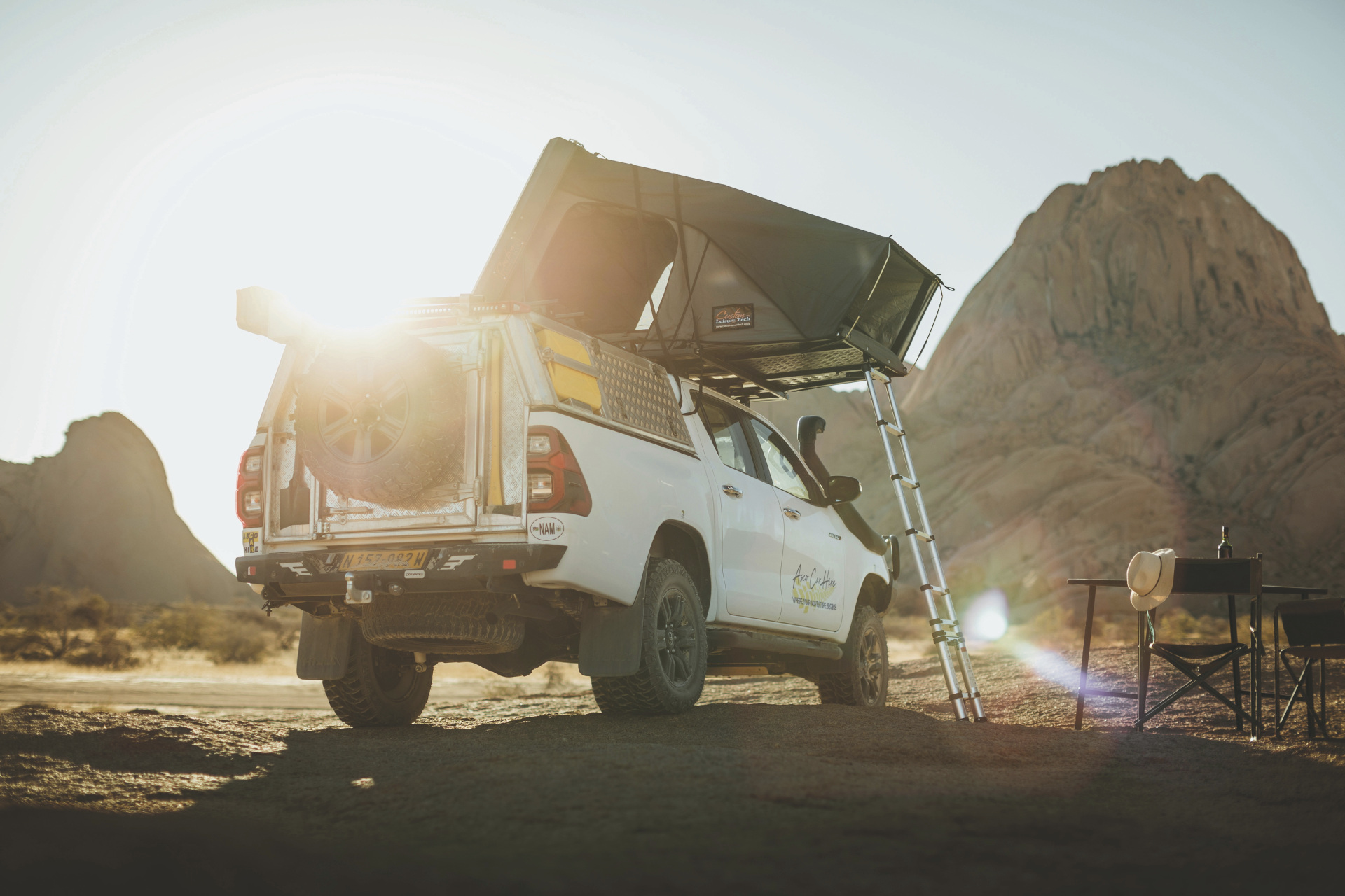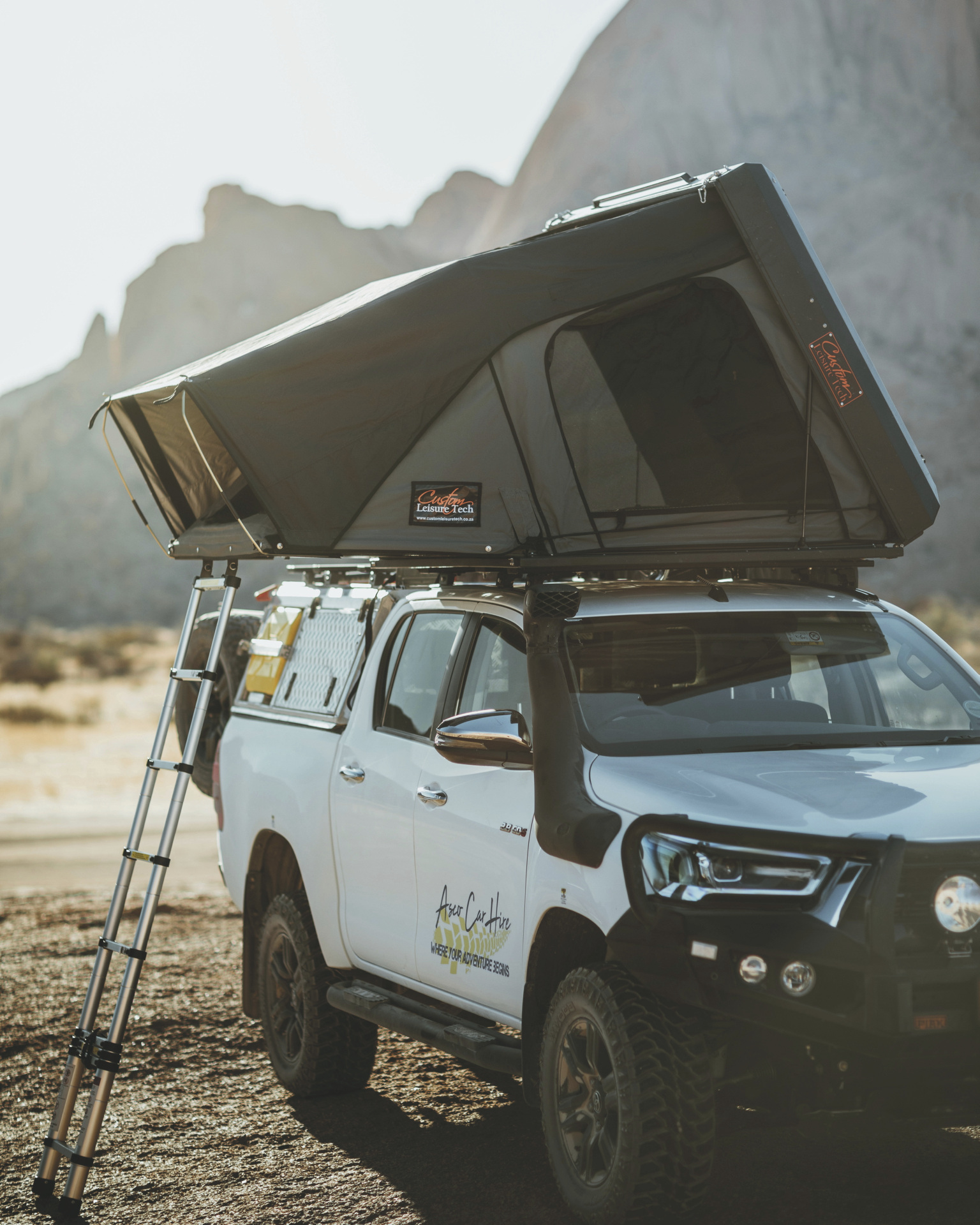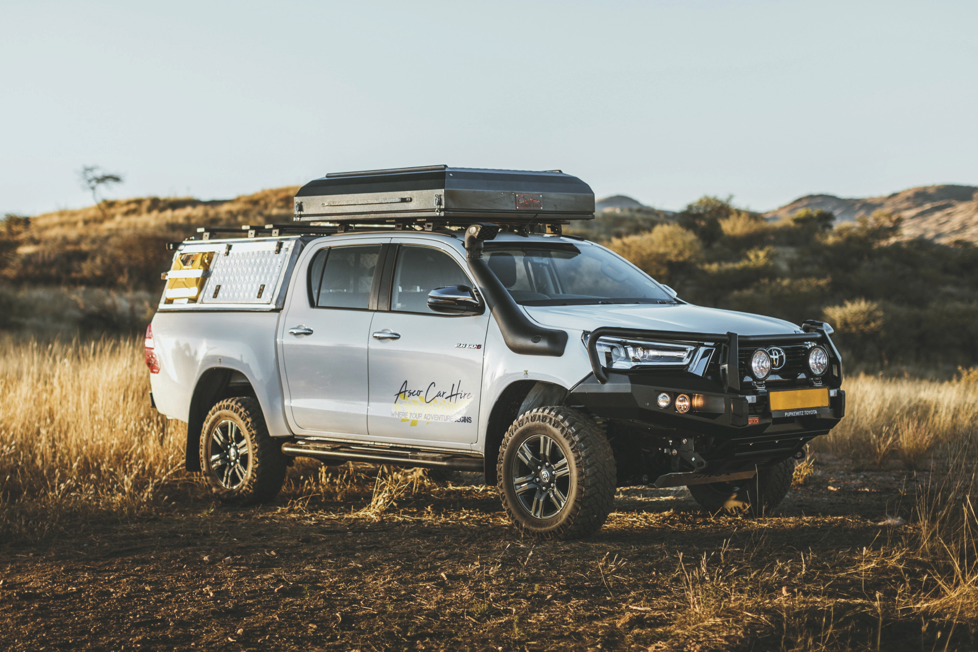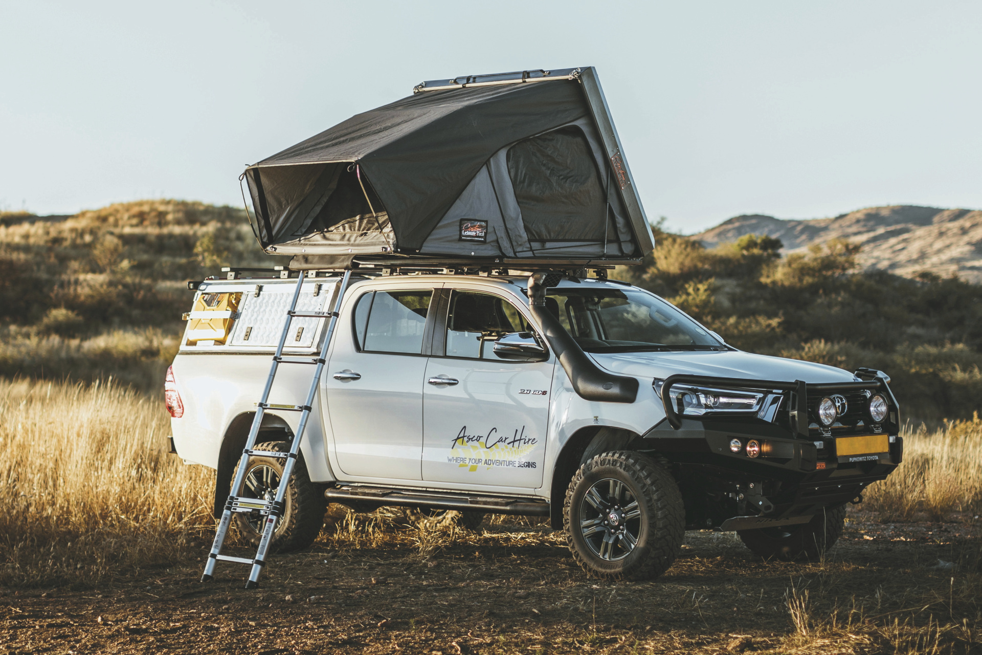 Die Toyota Hilux-Modelle der Safari-Baureihe verfügen über einen stärkeren Motor, ein spezielles Offroad-Fahrwerk sowie ein größeres und einfacher zu bedienendes Dachzelt. Ein 4x4-Camper für maximal 2 Personen.