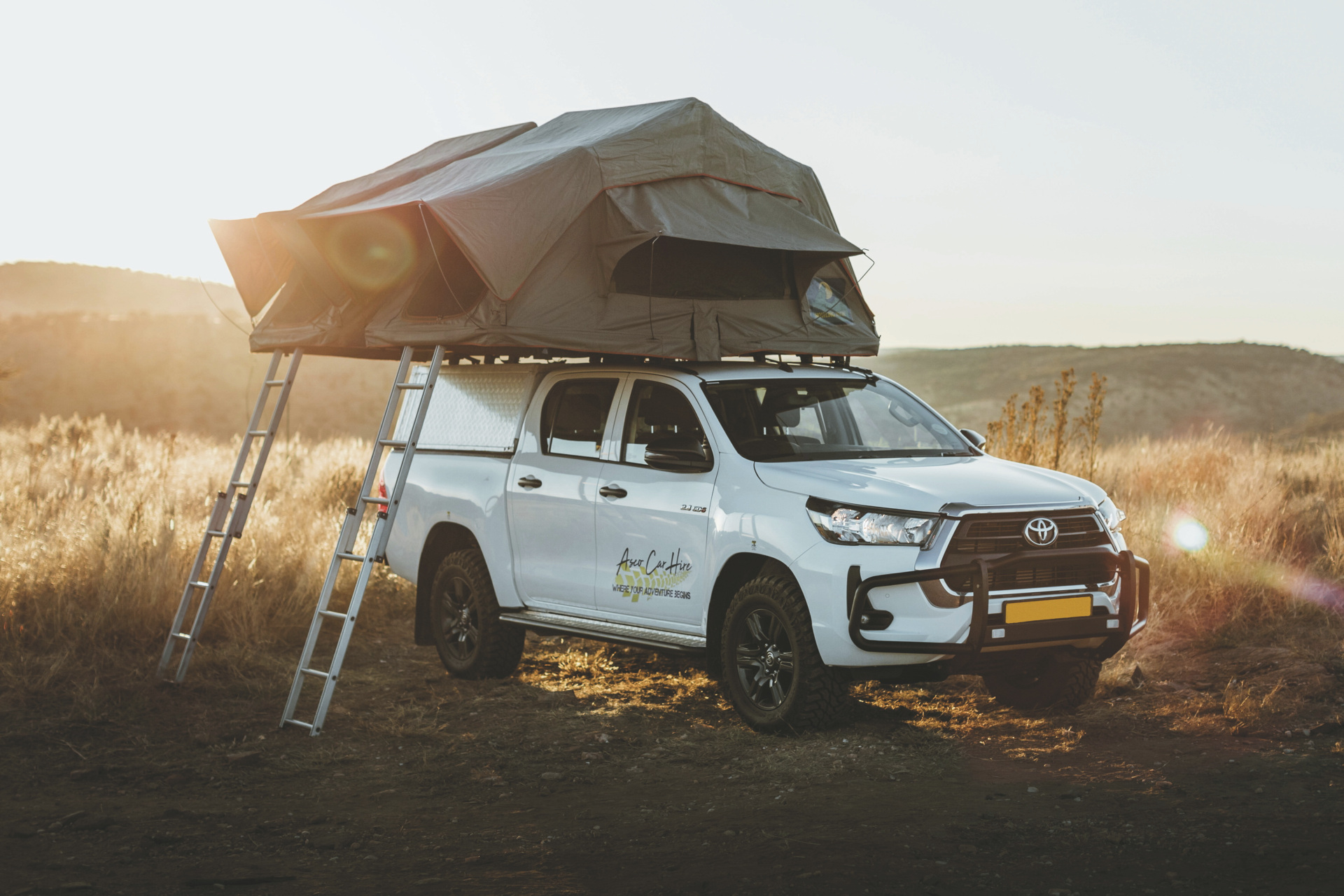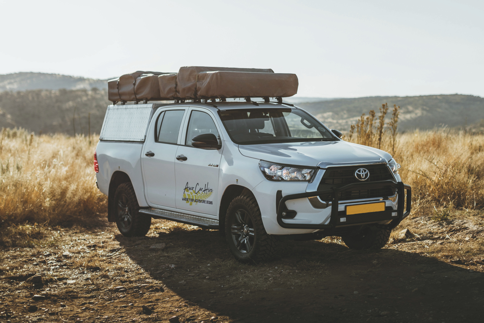 Der zuverlässige Toyota Hilux verfügt über zwei Dachzelte und einen 140 l Treibstofftank für große Reichweite. Ein 4x4-Camper für 3-4 Personen.