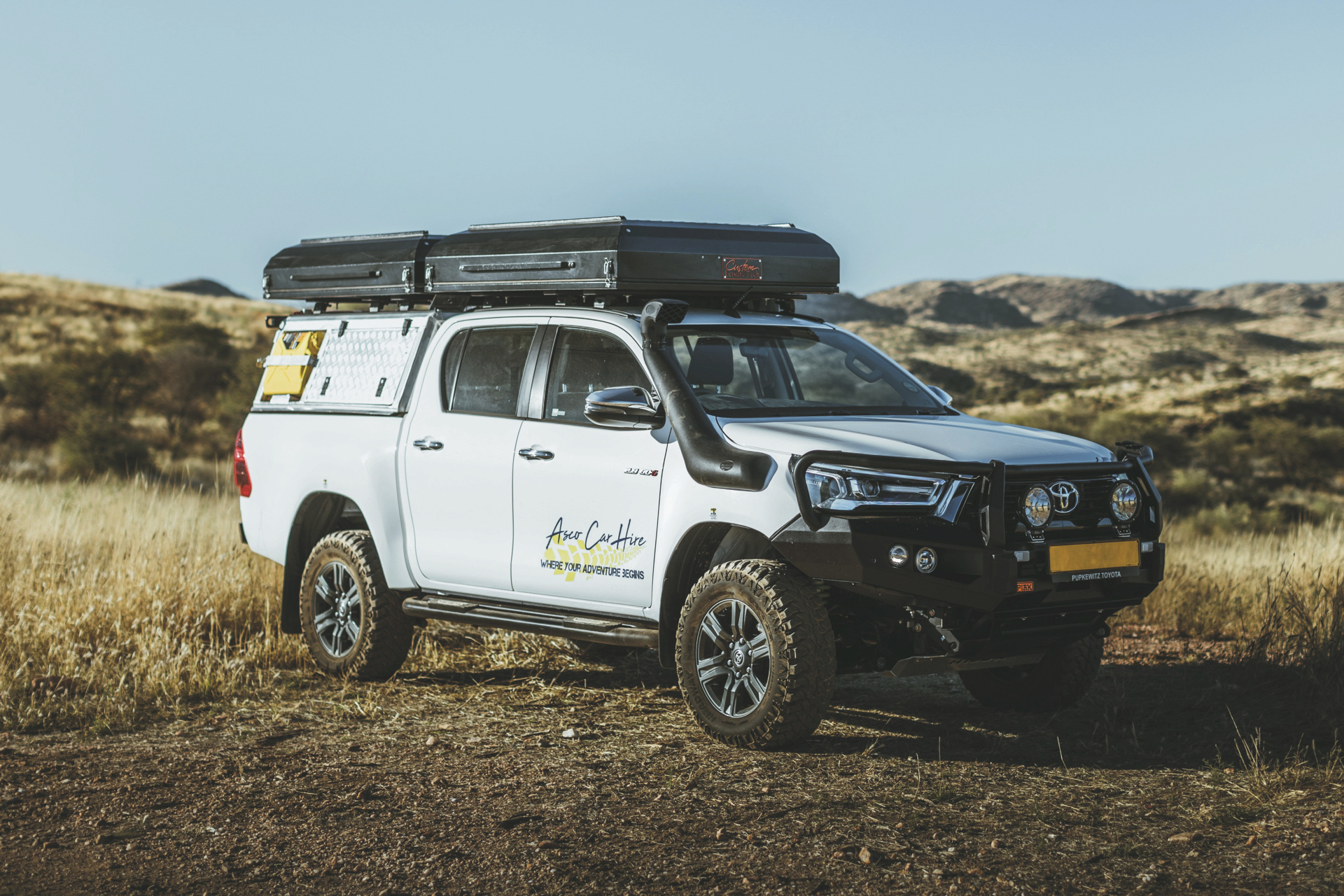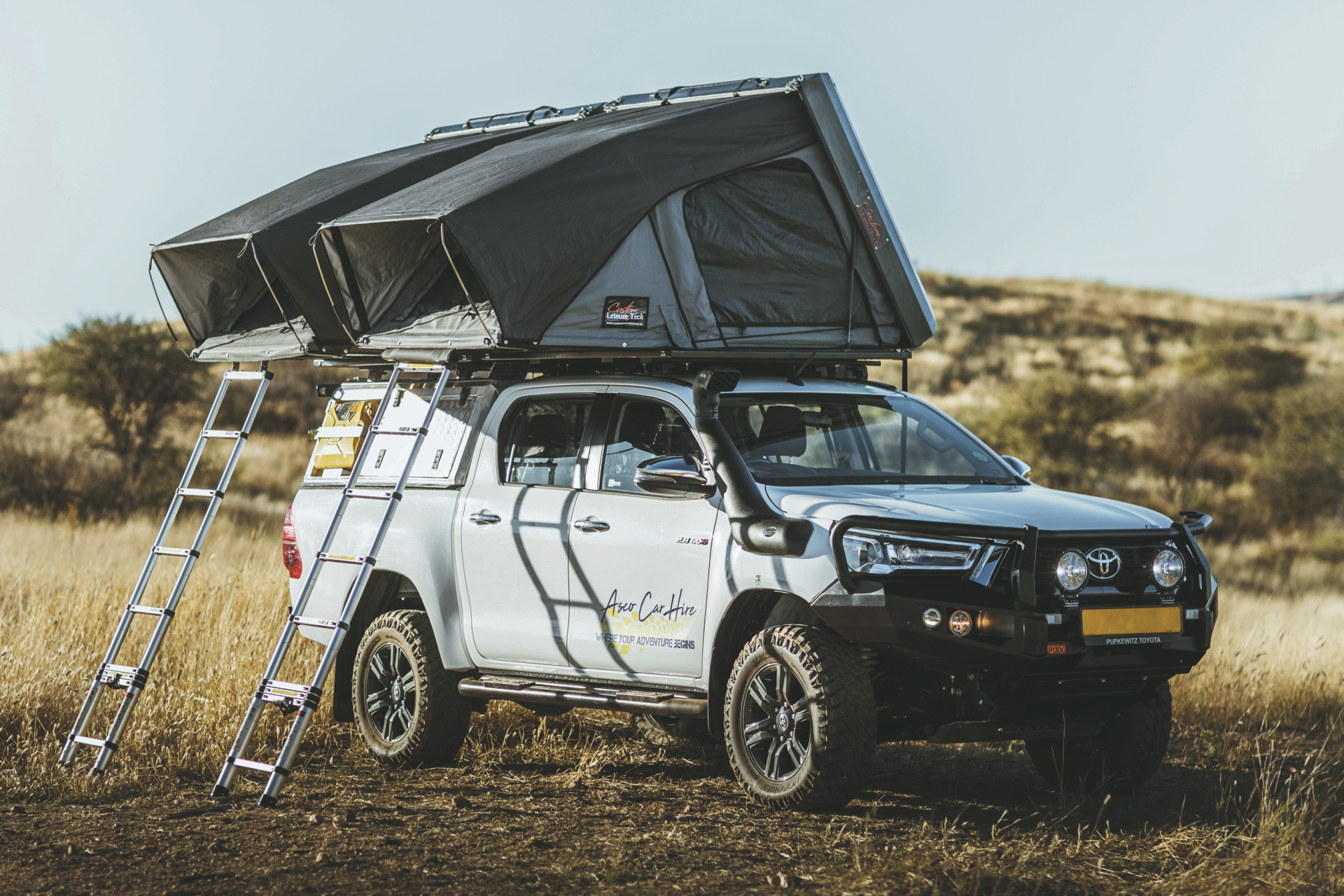 Die Toyota Hilux-Modelle der Safari-Baureihe verfügen über einen stärkeren Motor, ein spezielles Offroad-Fahrwerk sowie zwei größere und einfacher zu bedienende Dachzelte. Ein 4x4-Camper für 3-4 Personen.