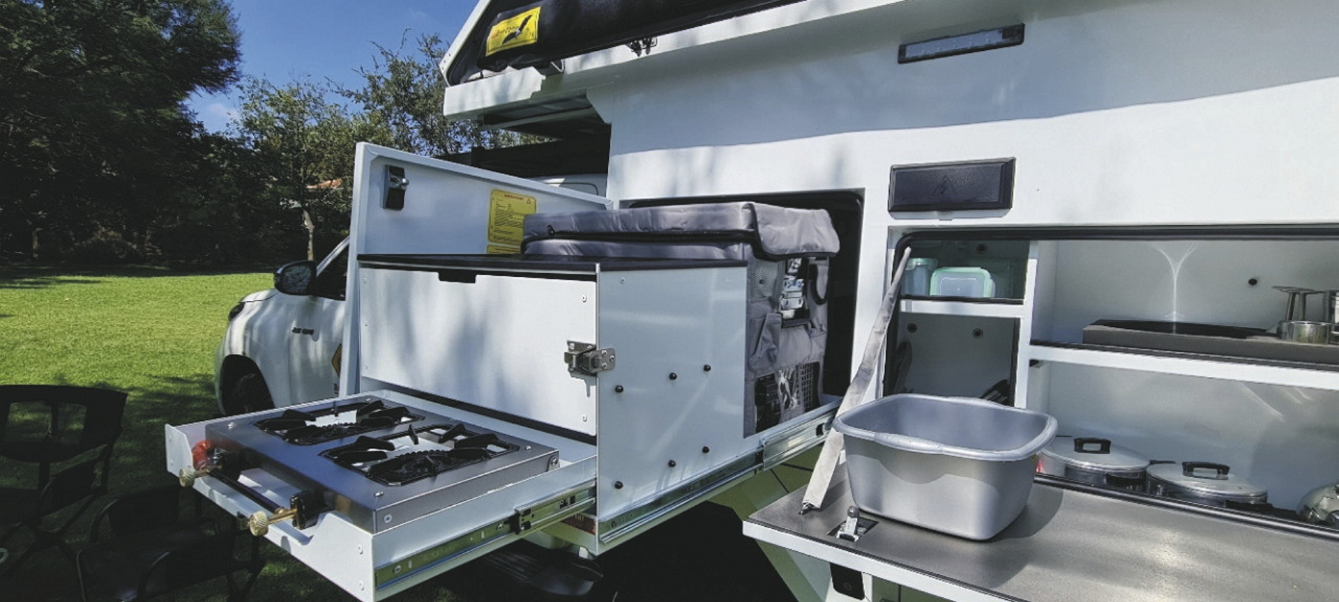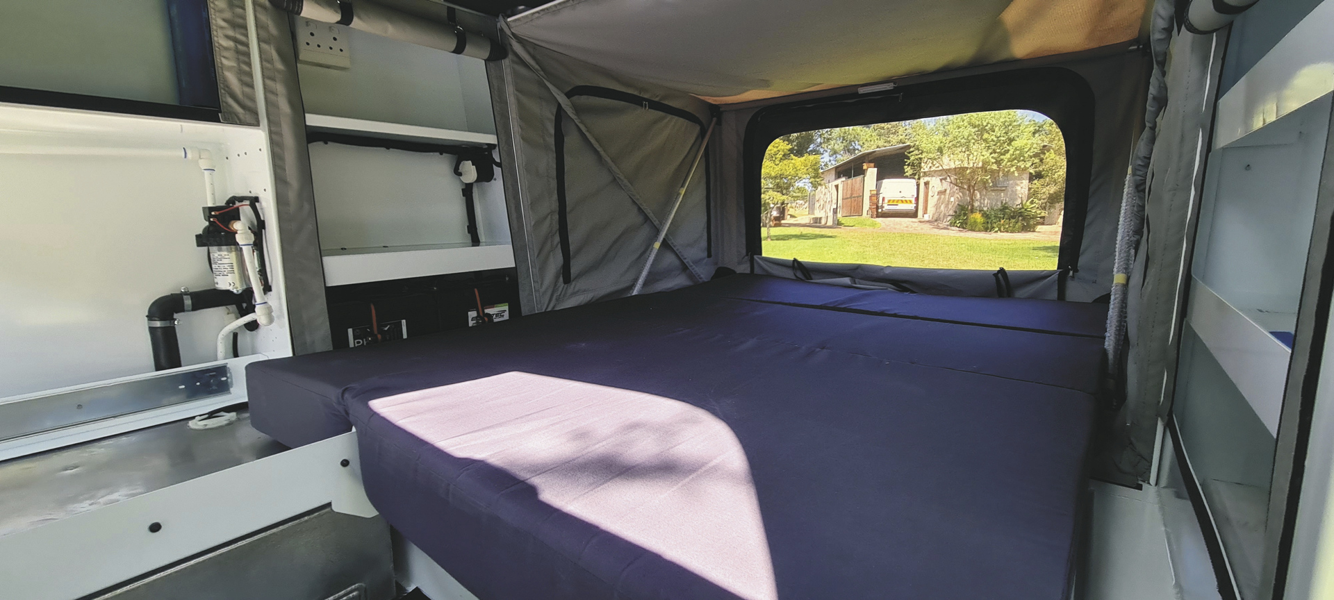 Der beliebte Toyota Hilux Bushcamper ist mit einer praktischen Wohn-/Schlafkabine mit Hecktür ausgestattet, die zwei Betten für max. 3 Erwachsene oder 2 Erwachsene/2 Kinder bietet.
