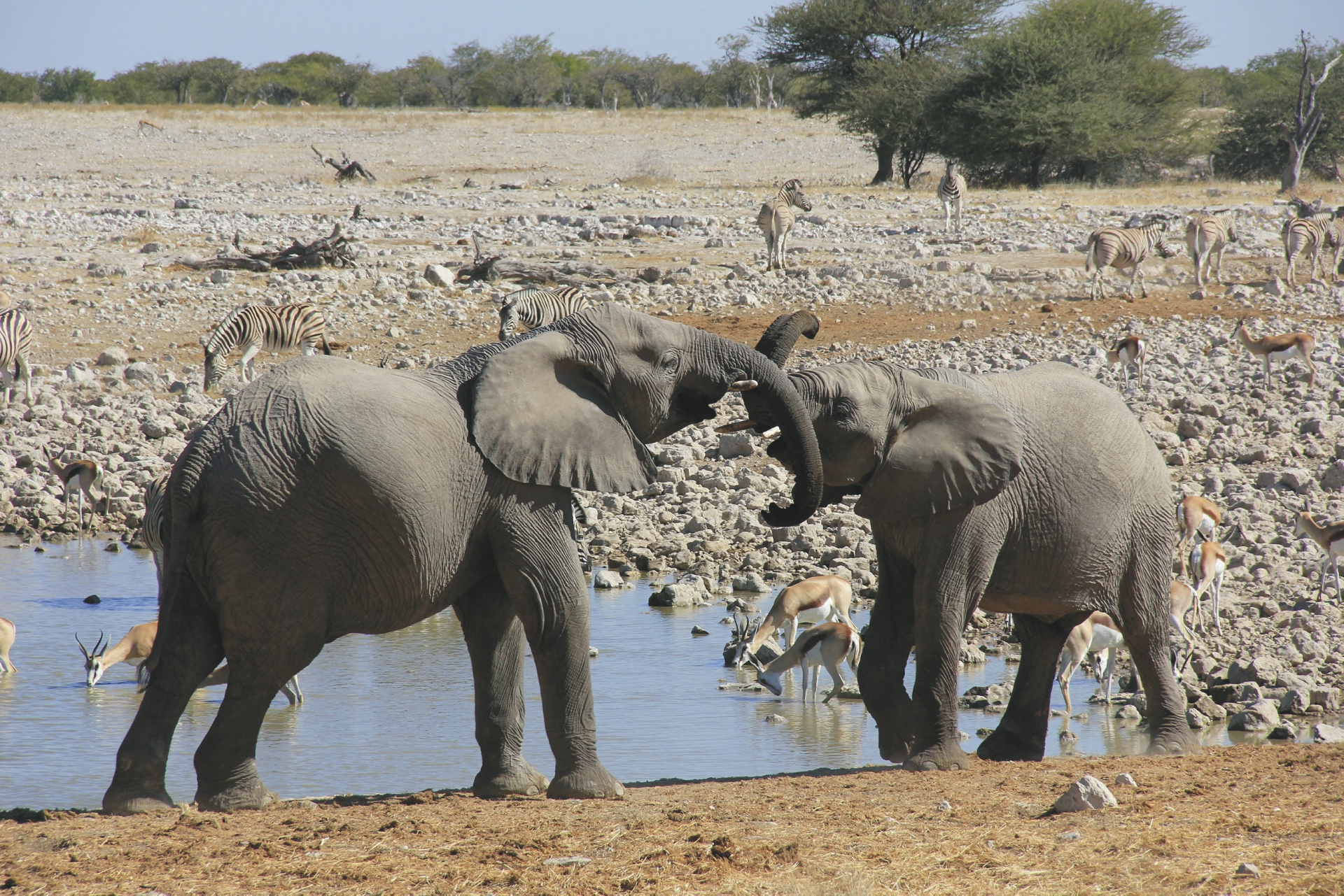 Der Etosha Nationalpark wurde 1907 gegründet und ist einer der attraktivsten Parks des südlichen Afrikas. Sie verbringen die nächsten beiden Tage meist in der Nähe der Wasserlöcher mit Tierbeobachtungen. Elefanten, Nashörner, Giraffen, verschiedene Antilopenarten und mit etwas Glück auch Löwen und Leoparden kommen zum Trinken an die Wasserstellen und können dabei beobachtet werden. Ü: Etosha Village o.ä.