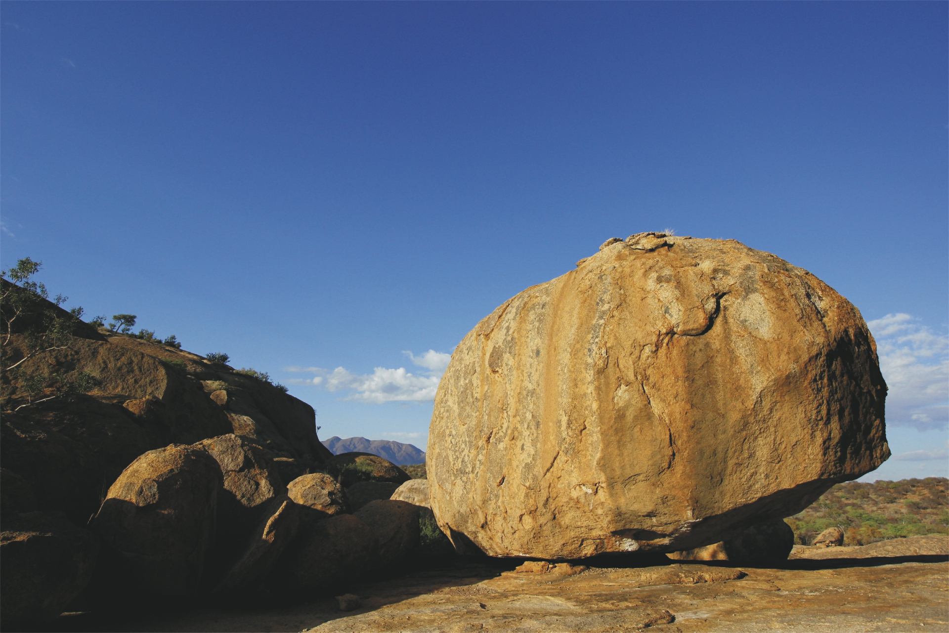 Von der Küste geht es in das Erongo Gebirge. Unterwegs besuchen Sie die Spitzkoppe, die mit einer Höhe von ca. 1.730 Metern weithin sichtbar ist und das San Living Museum. Während einer Naturrundfahrt zum Sonnenuntergang lernen Sie allerhand Interessantes über die Farm, sowie die Tiere und das Ökosystem Namibias. Ü: Otjohotozu Guestfarm o.ä.