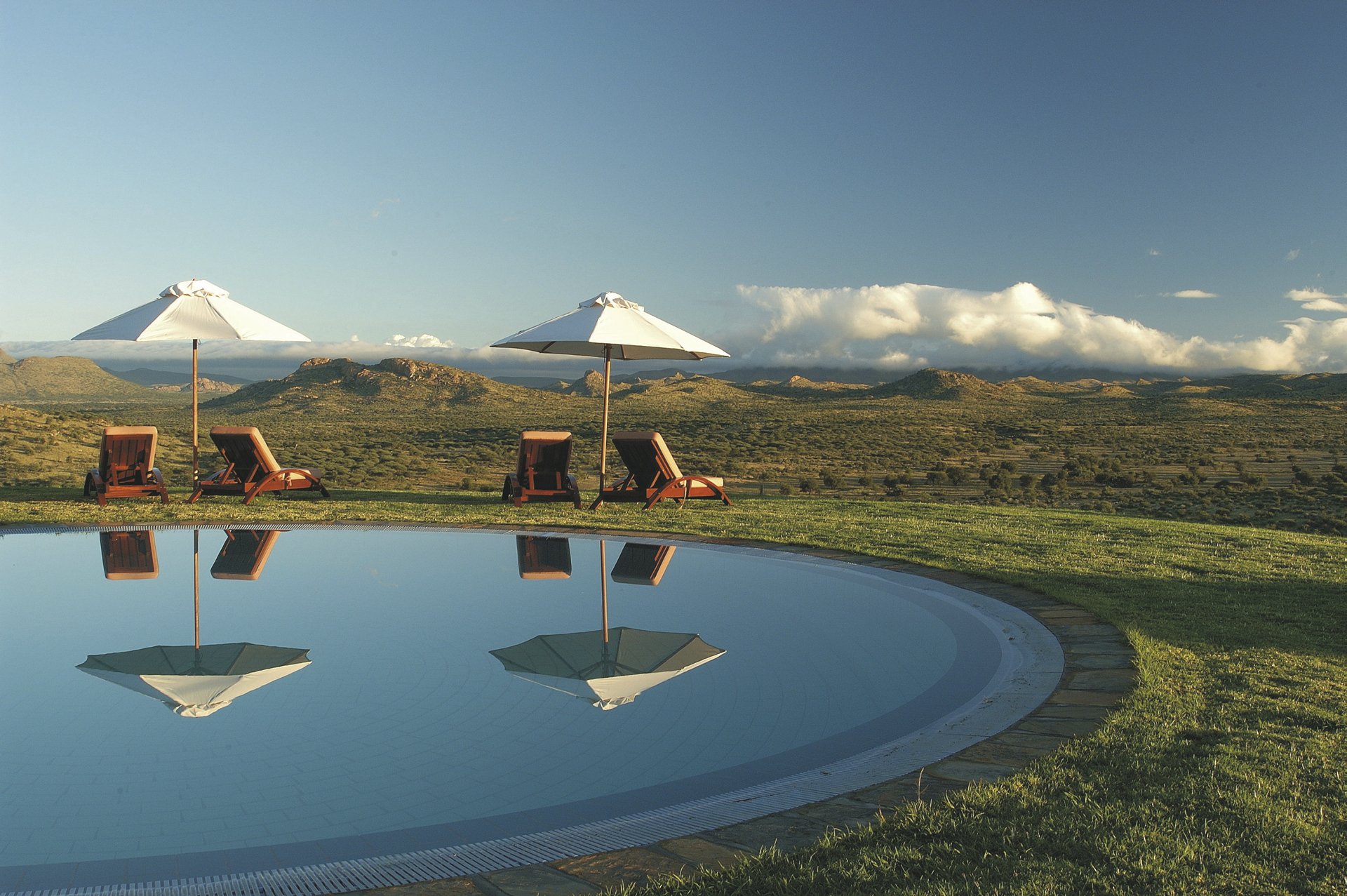 Rückflug zum Internationalen Flughafen von Windhoek, etwa 1,5 Stunden Transfer in das auf einem Plateau gelegene Wildschutzgebiet. Lassen Sie die Reise Revue passieren und genießen Sie die Aussicht. 2 Ü: GocheGanas.