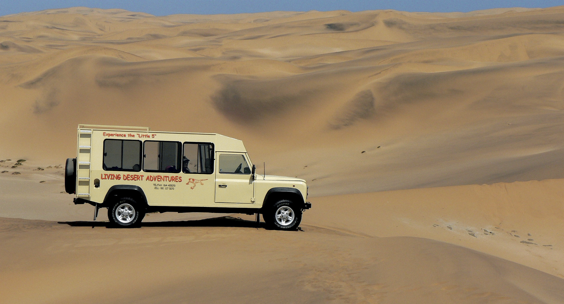 Gegen 8.00 Uhr beginnt das Allradabenteuer rund um die kleinen Wüstenbewohner, liebevoll auch Little Five genannt. Sehr einfühlsam lernen Sie, dass die Wüste lebendig ist und dort allerlei kleine Tiere, wie Geckos, Käfer, Schlangen und Chamäleons wohnen. Nachmittag zur freien Verfügung. Swakopmund und Umgebung ist ein Paradies für ausgefallene Outdoor Aktivitäten wie Kajakfahren, Sandboarden oder Quadfahren. Es kann aber auch gemütlich zugehen bei einer Stadtrundfahrt, einem Besuch im Township oder im Museum