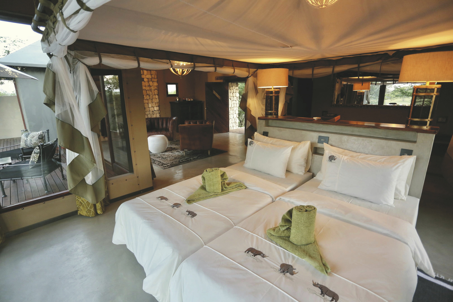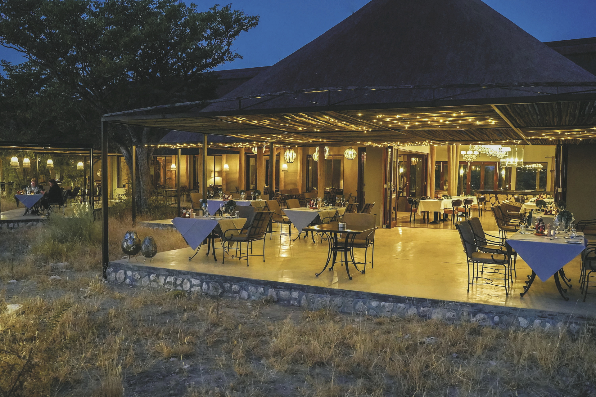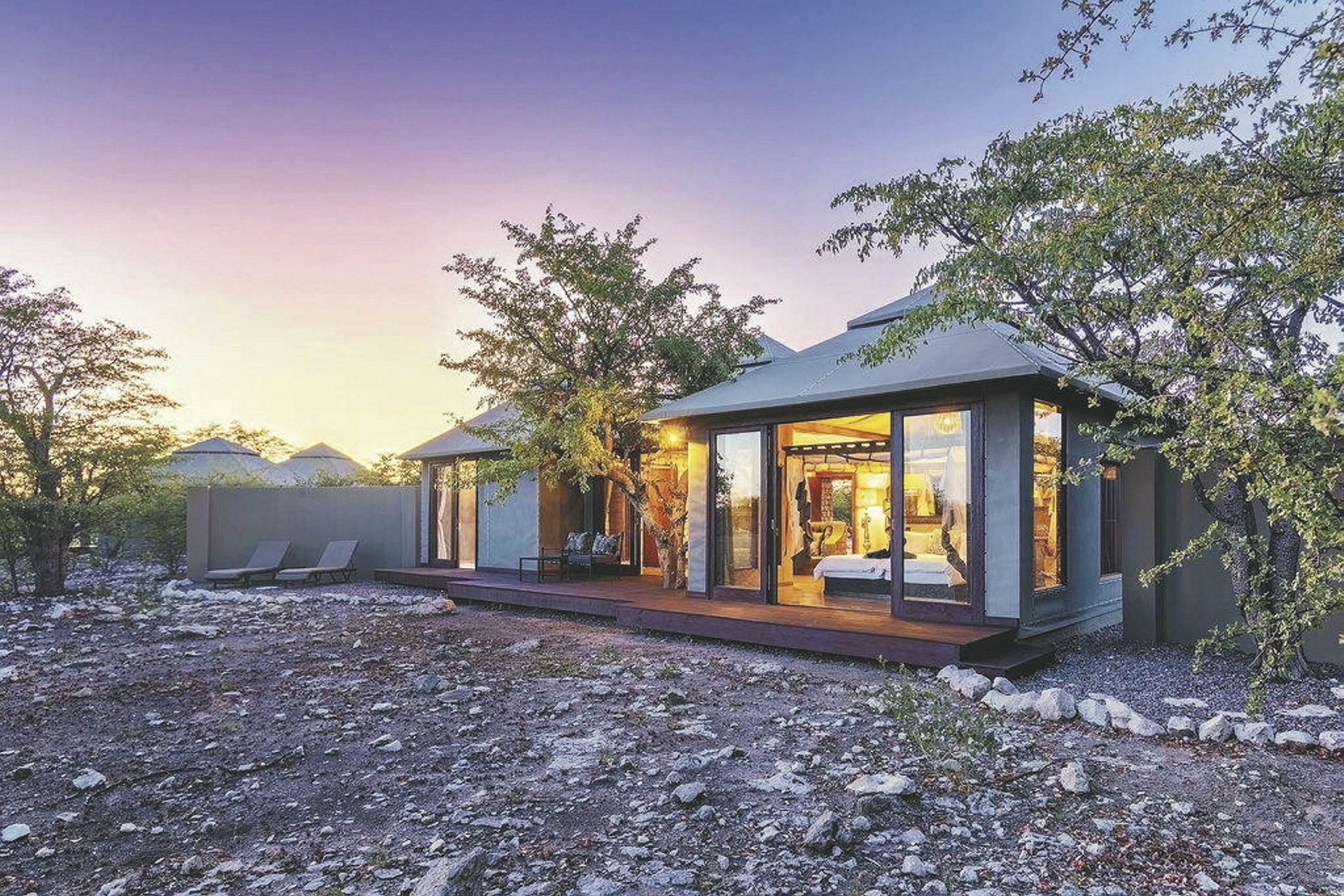 Die Etosha Oberland Lodge liegt in einem ca. 5.500 Hektar großen, privatem Schutzgebiet nur wenige Kilometer vom berühmten Etosha Nationalpark. Die Lodge vereint Luxus mit jeder Menge Privatsphäre. Das Hauptgebäude, welches Sie über einen langen Holzsteg erreichen, verfügt über eine Lounge mit Kamin für kühle Winterabende, ein Restaurant mit großer Terrasse und eine Bar. Es ist herrlich gelegen zwischen großen, uralten Mopanebäumen. Vom großen Pool bietet sich ein toller Blick in die offene Grasebene vor der Lodge und zu den beiden Wasserlöchern. Mit etwas Glück schauen hier auch gerne die Gnus, Antilopen oder weitere Wildtiere vorbei. Während sich die Sonne langsam dem Horizont nähert und sich alle Farben verändern lässt sich dieses Schauspiel wunderbar mit einem Getränk von den kleinen privaten Sitzinseln beobachten. Den Safaritag lassen Sie am besten am Lagerfeuer ausklingen. Optionale Aktivitäten: ganztägige Pirschfahrt im Etosha Nationalpark, geführte Wanderungen.