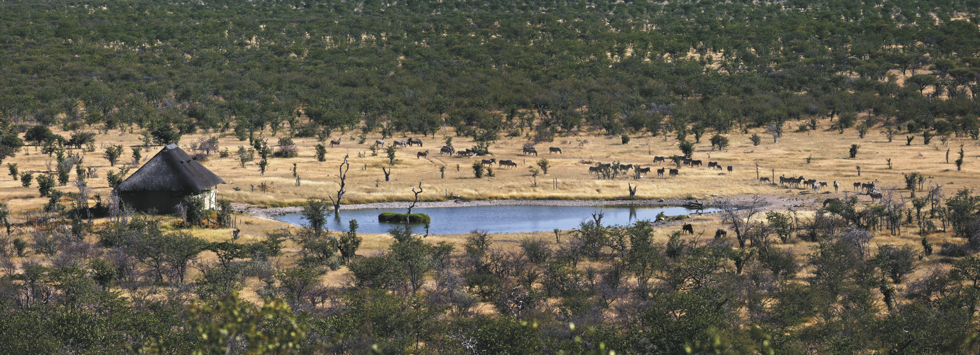 Das 65.000 ha große, private Etosha Heights Game Reserve grenzt südlich an den Etosha Nationalpark. Zum Anderson Eingangstor des Nationalparks sind es 115 km, nach Kamanjab 90 km.