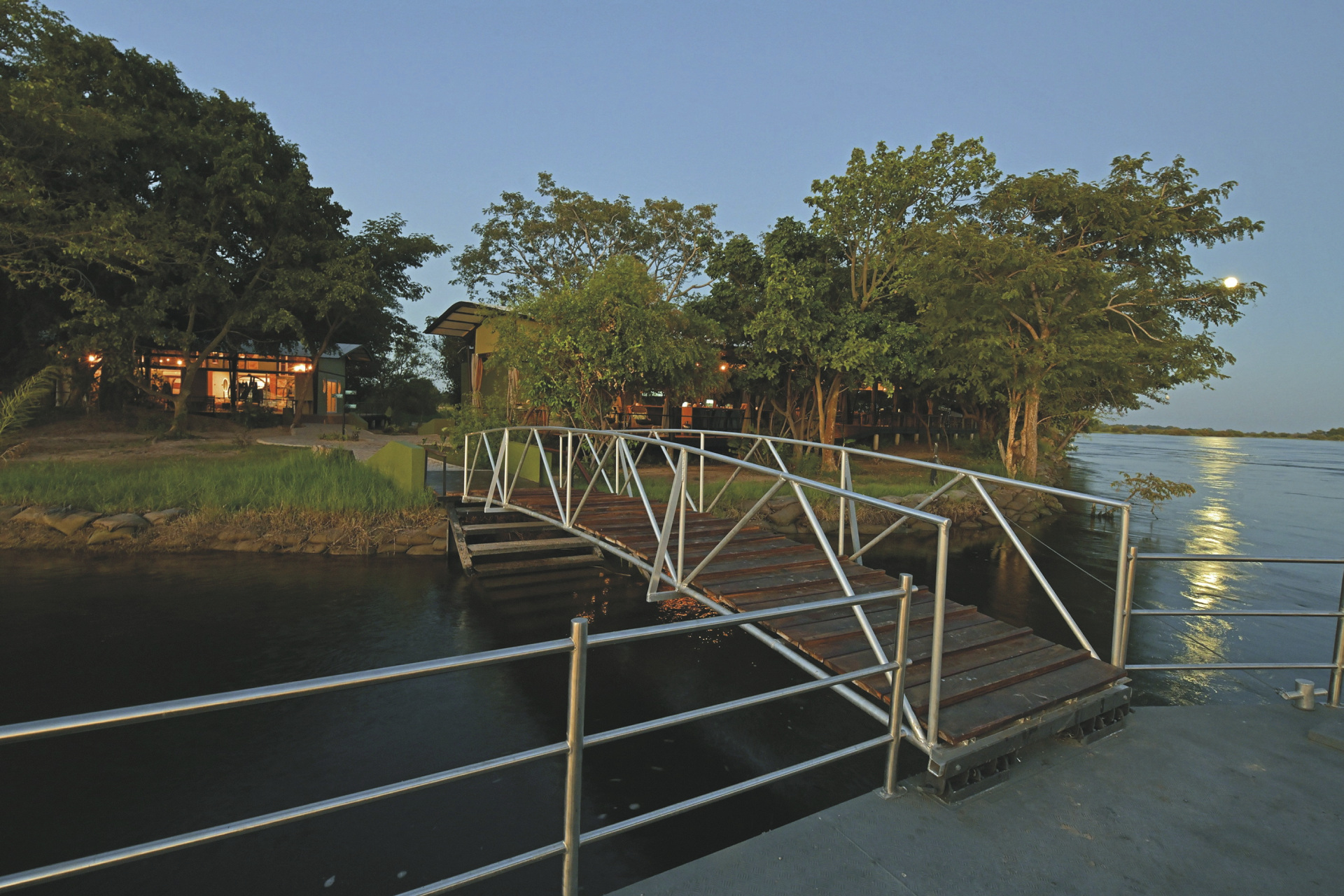 Modern, innovativ und stilvoll ist die Lodge und außerdem ein Paradies für Vogelliebhaber. Am Ufer des Flusses nistet von August bis Dezember eine der größten Kolonien der karminroten Bienenfresser (Karminspinte) und erfüllet die Luft mit ihrem Gezwitscher und ihrem leuchtenden Federkleid. Der zentrale Bereich ist offen gestaltet und bietet allzeit einen Blick auf den dahinfließenden mächtigen Zambezi. Sie finden hier das Restaurant und die Bar mit einer großen Terrasse. Zwischen den Aktivitäten bietet der Pool eine willkommene Abkühlung, auch hier beherrscht der Fluss das Panorama. Optionale Aktivitäten: Bootsfahrten, Angeln, Vogelwanderungen.