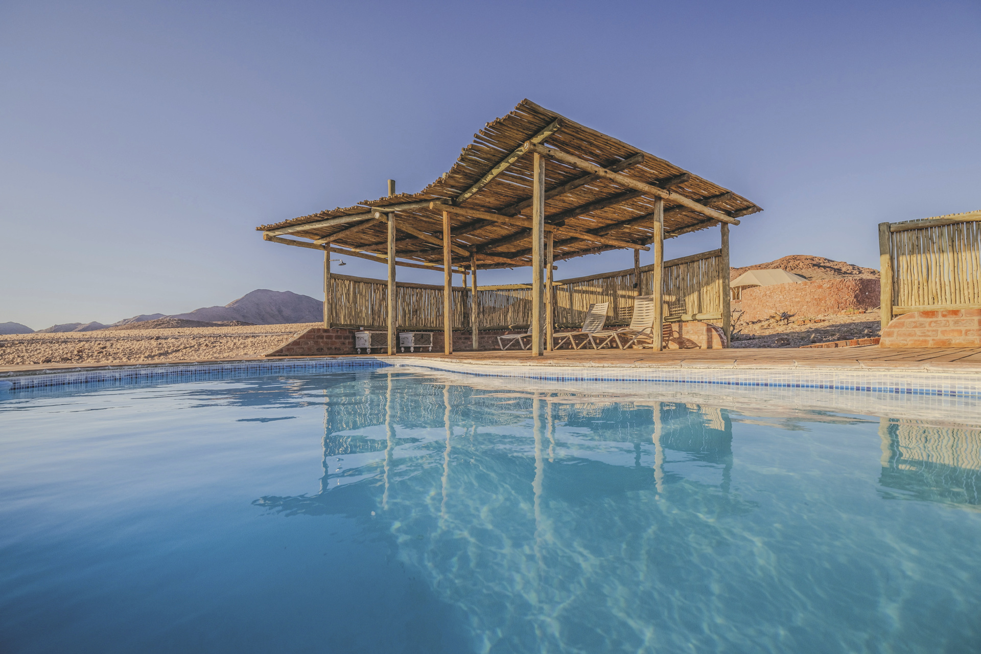 Das im Stil eines Beduinendorfes errichtete Camp lässt keinen Komfort vermissen. Es verfügt über ein großes Lounge-/Speisezelt mit Honesty-Bar und schattiger Terrasse. Ein netter Pool mit Sonnenterrasse sorgt für Erfrischung am Tag und eine Feuerstelle am Abend für Wärme, Gemütlichkeit und die perfekte Aussicht auf einen spektakulären namibischen Nachthimmel. Limitiertes WLAN erhalten Sie ausschließlich im Hauptbereich. Optionale Aktivitäten: Ausflug zum Sossusvlei und Panoramafahrten zum Sonnenuntergang.