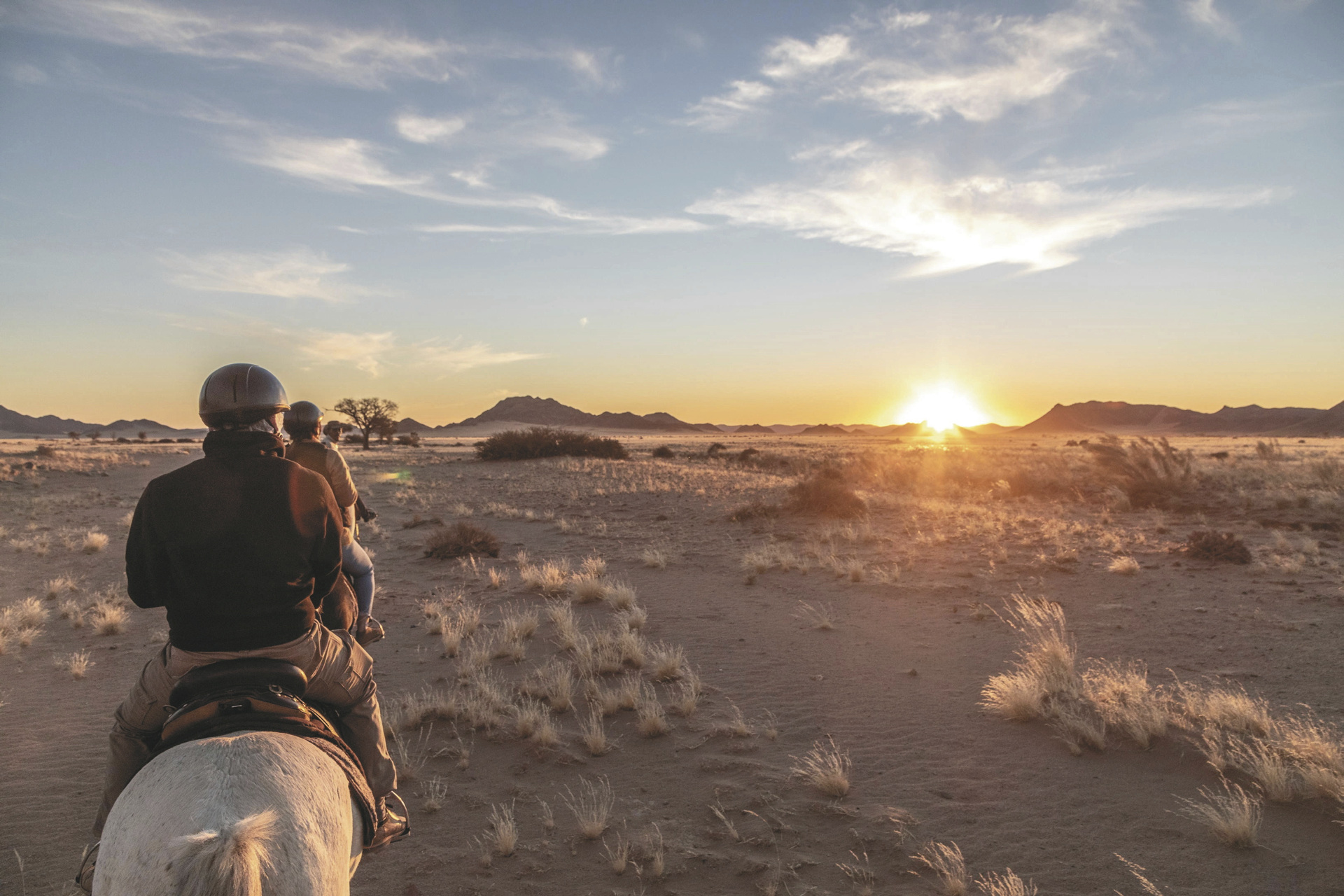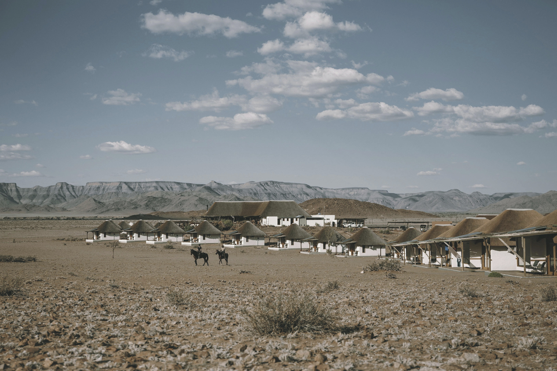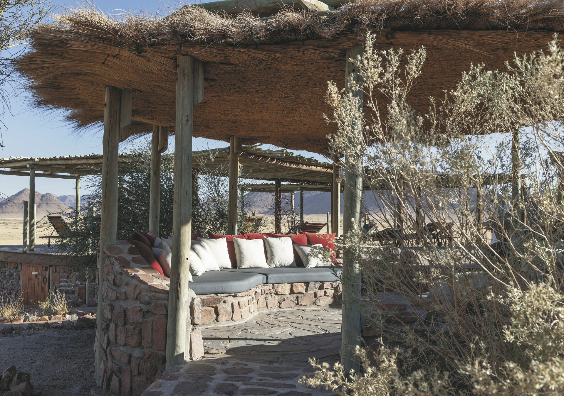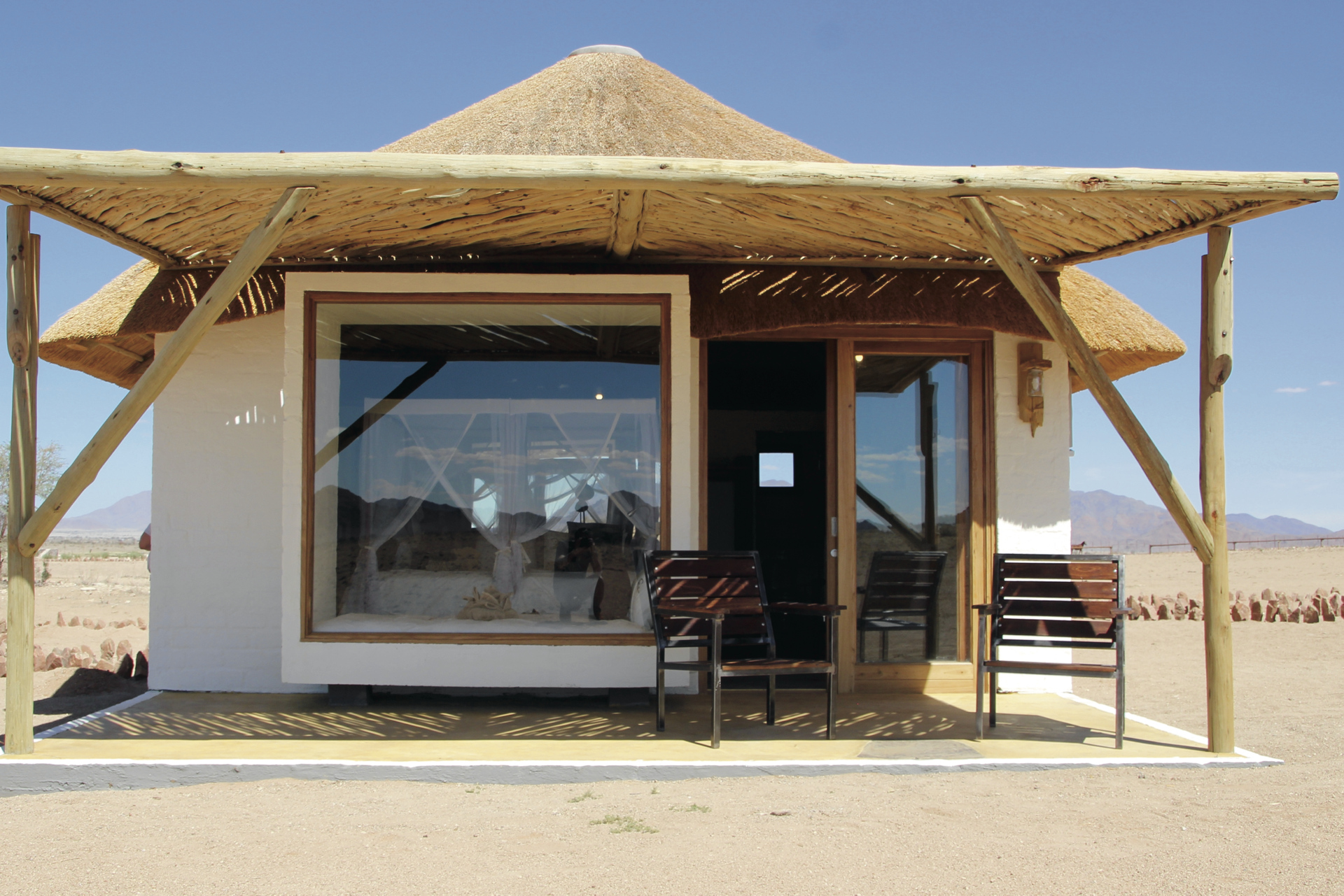 Die Lodge ist im Stil eines modernen, riedgedeckten Gutshofes mit Pferdegestüt angelegt, es wird großen Wert auf Nachhaltigkeit gelegt. Das Haupthaus steht auf einem Hügel und bietet einen herrlichen Panoramablick. Hier befinden sich das Restaurant mit Terrasse, die Bar, Lounge, Shop und zwei Pools mit großer Sonnenterrasse. Kostenloses WLAN im Hauptbereich. Optionale Aktivitäten: Ausflug zum Sossusvlei, Reitsafari für Anfänger und Könner, markierte Wanderwege, Panoramafahrten; Namib Night - zweitägige Reitsafari mit Übernachtungen im mobilen, rustikalen Zeltcamp.
