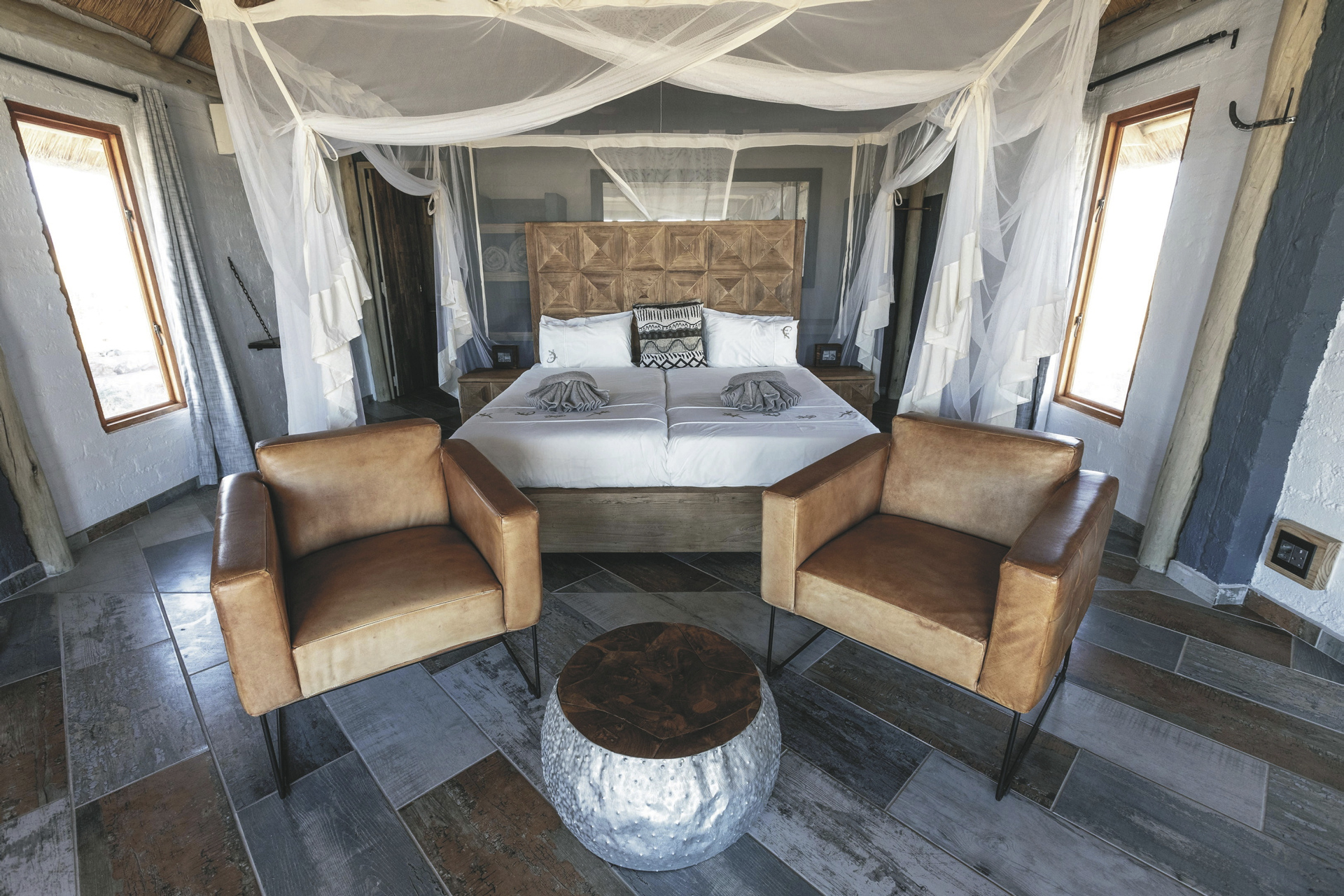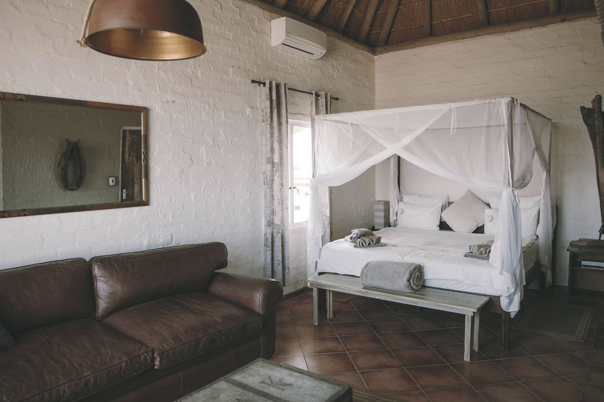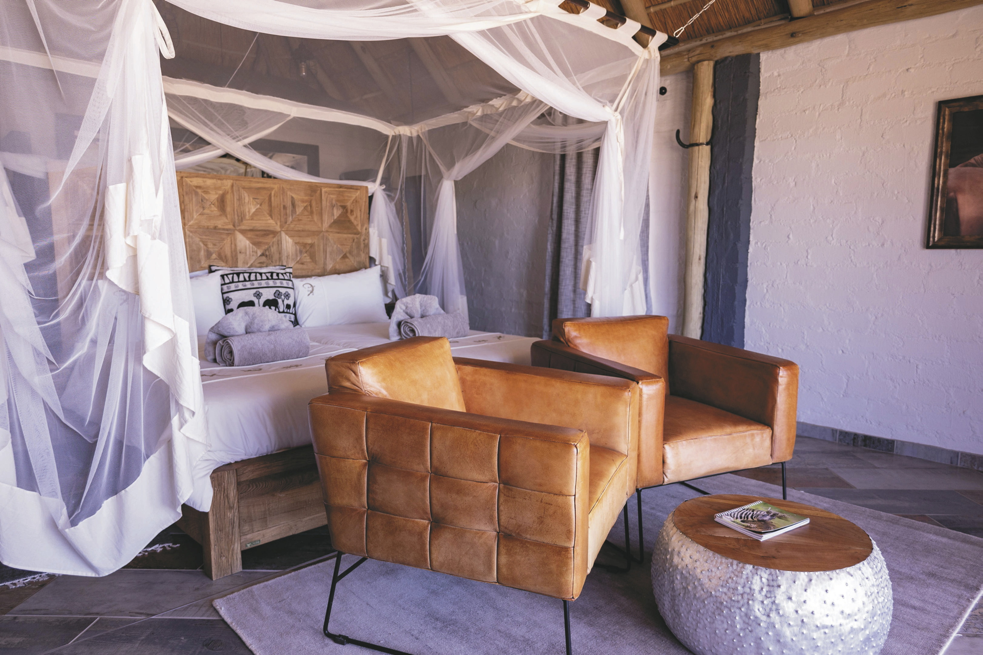 Die 26 renovierten Gästezimmer vermitteln rustikale Gemütlichkeit und passen ebenfalls ins Konzept Gutshof. Sie sind ausgestattet mit eigenem Bad, Moskitonetz, Safe, Tee-/Kaffeezubereiter, Klimaanlage und einer überdachten Terrasse, die einen grandiosen Blick über das Reservat gewährt. 7 Zimmer sind für Familien mit 1-2 Kindern geeignet. Das Reiterzimmer mit zwei Schlafzimmern und einem gemeinsamen Bad bietet bis zu 4 Personen Platz.