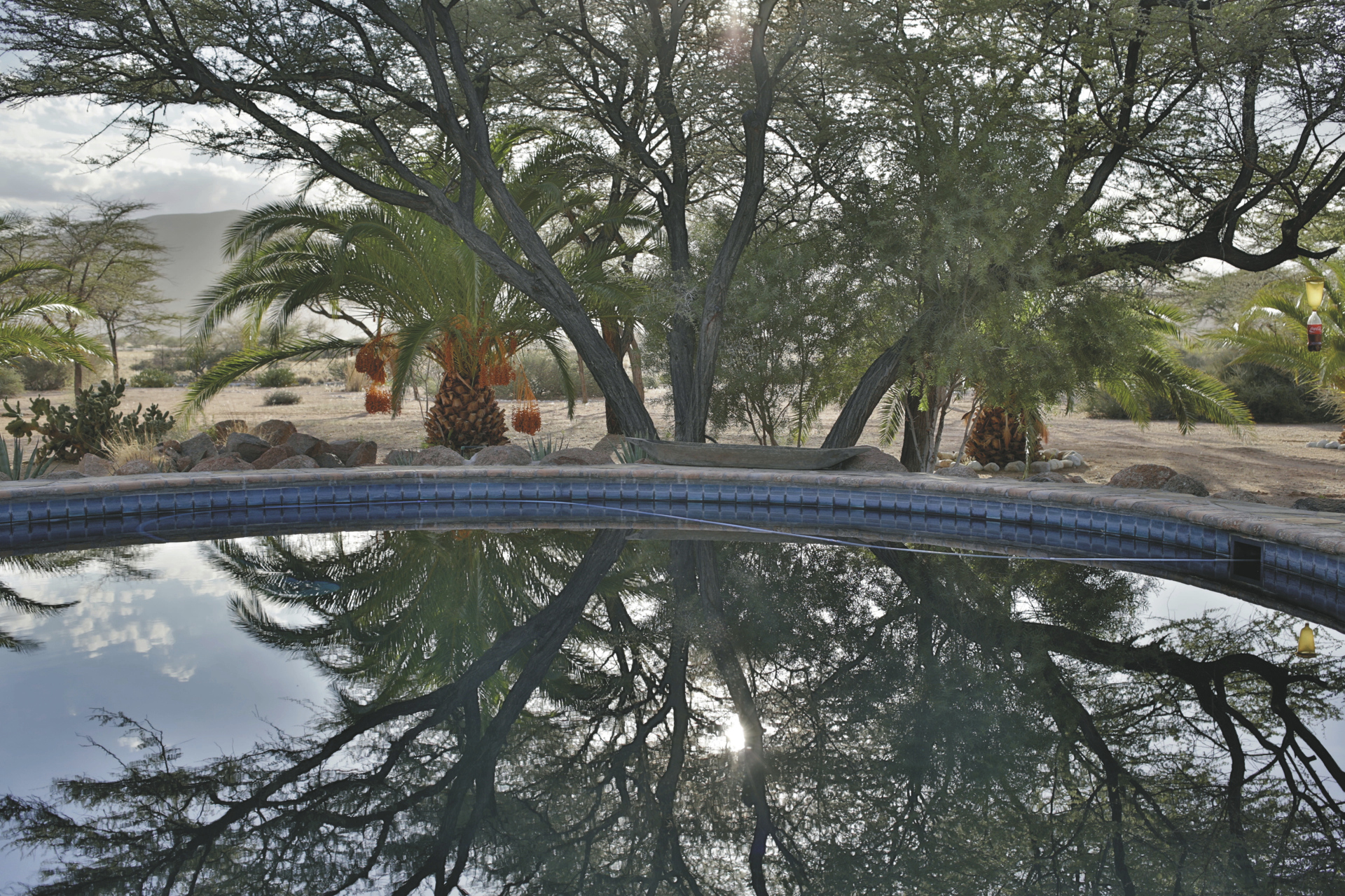 Das hübsche historische Farmhaus von 1903 befindet sich auf einer aktiven Rinderfarm mit großem Wildtierbestand. Das Haupthaus hat eine typisch umlaufende Veranda, sodass immer ein schattiges Plätzchen zu finden ist. Hier oder im gemütlichen Speisezimmer werden kreative, aber landestypische Gerichte serviert, frisches Gemüse und Wildfleisch von der Farm, gerne auch abends vom Grill. Ein kühles Getränk finden Sie in der Honesty Bar. Im schattigen Wüstengarten liegt der Pool, der an heißen Tagen für Erfrischung sorgt. Optionale Aktivitäten: markierte Wanderwege, Farmrundfahrt, Sonnenuntergangsfahrt; ADAC-zertifiziertes Off Road - und Fahrsicherheitstraining. Etwas ganz besonderes ist der Ababis Mountain Trail, eine geführte 2-3-tägige Wanderung durch die Naukluft Berge in kleiner Gruppe mit Übernachtung unter den Sternen.