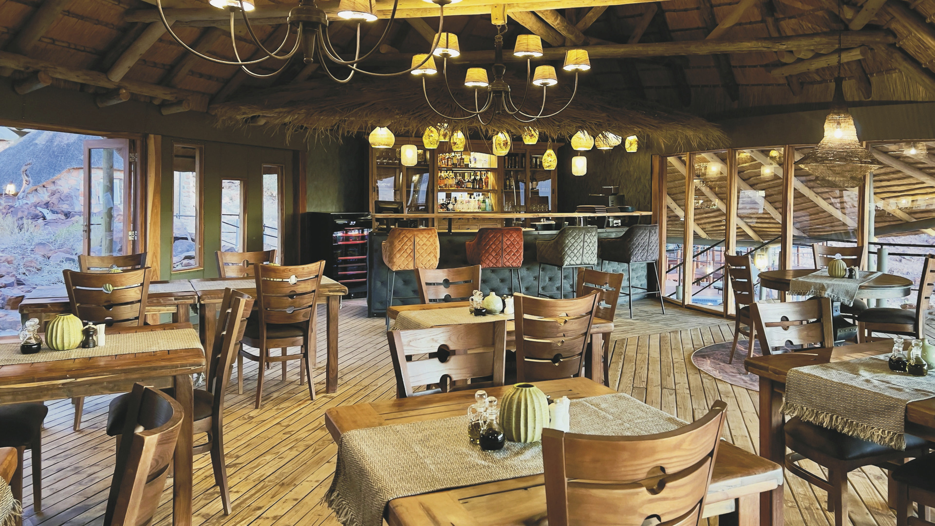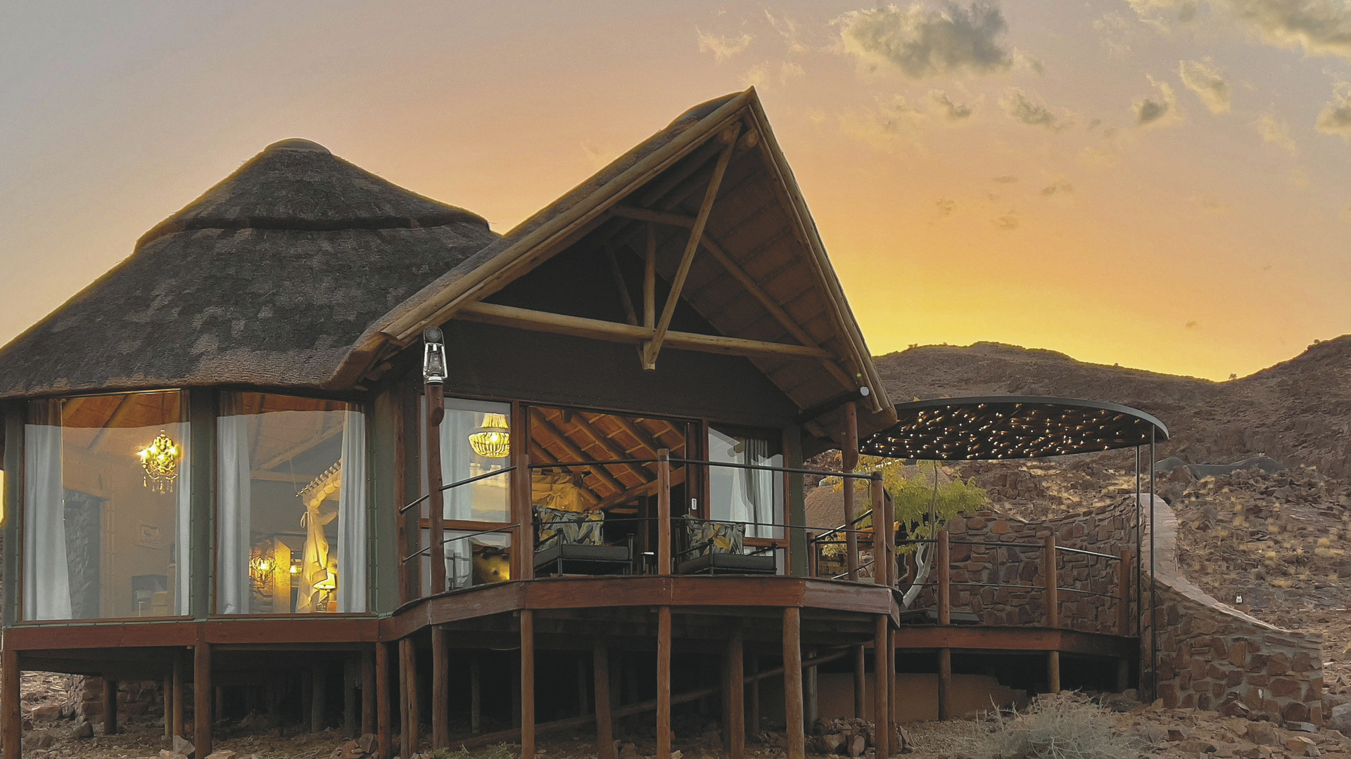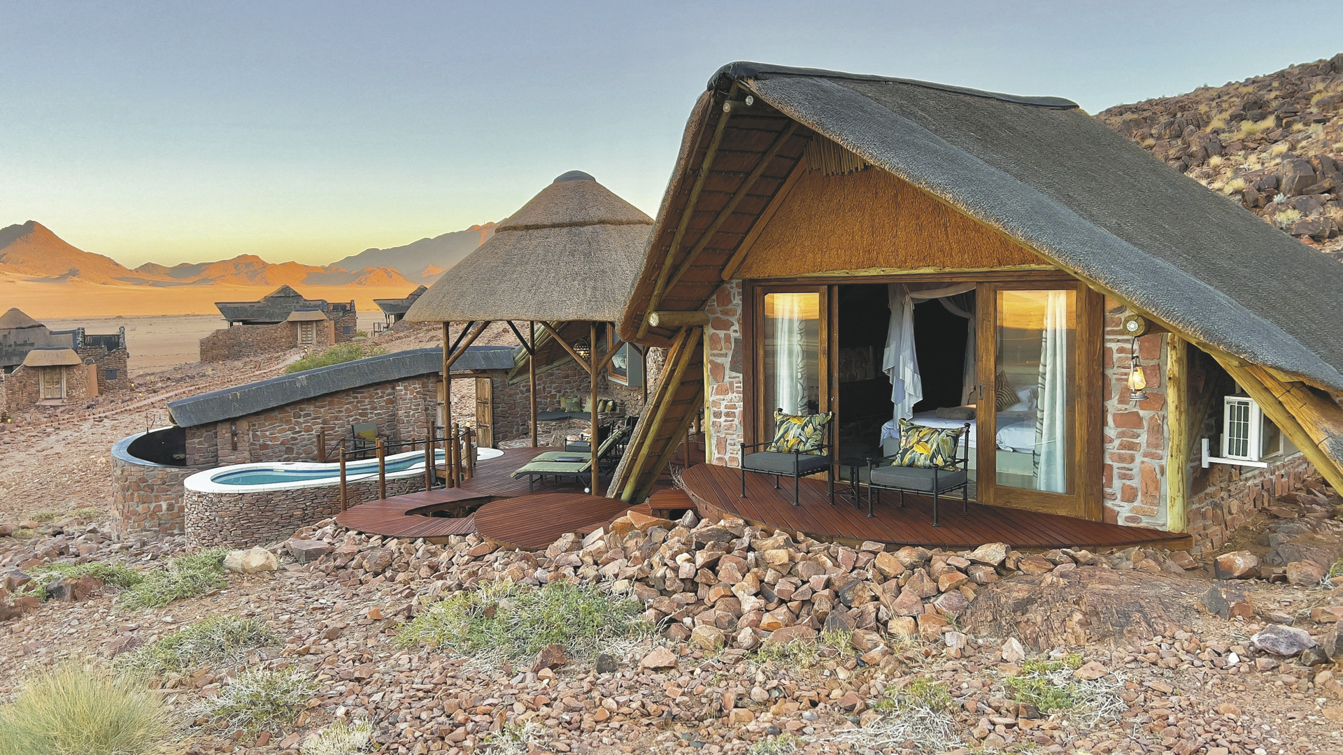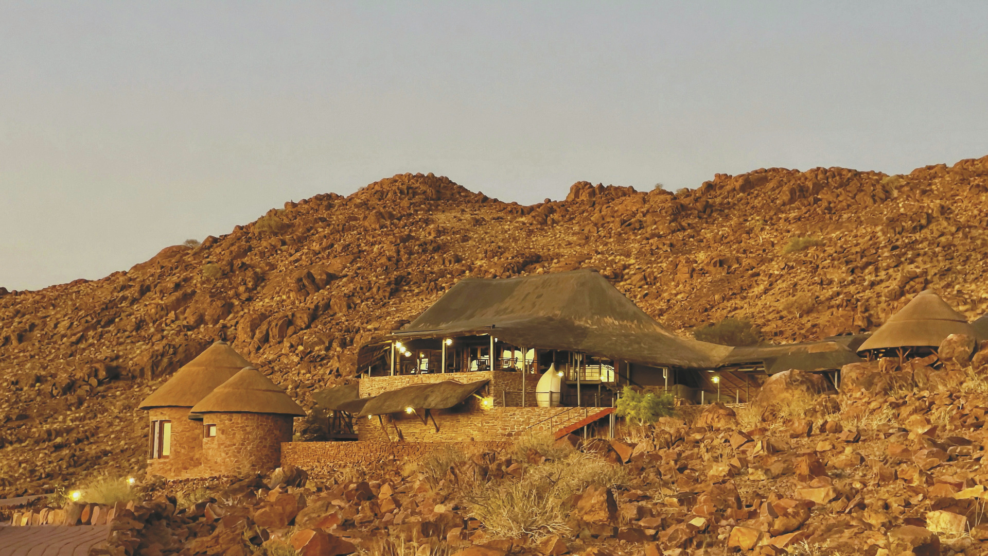 Malerisch am Fuße eines Berges gelegen mit eindrucksvollem Panoramablick bis in den Namib Naukluft Nationalpark. Die Lodge zeichnet sich durch entspannte Gastfreundschaft in einer natürlichen Atmosphäre aus.