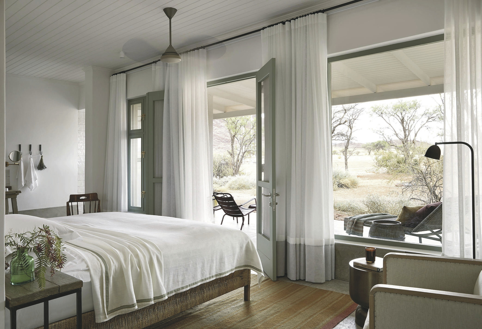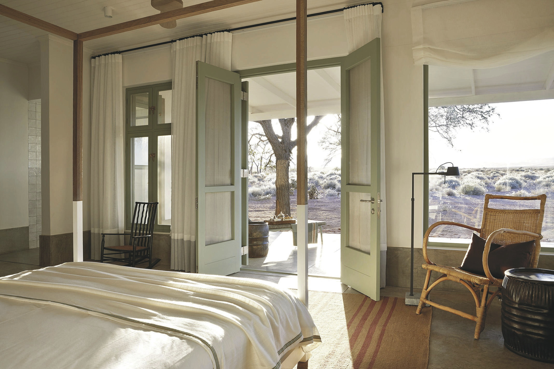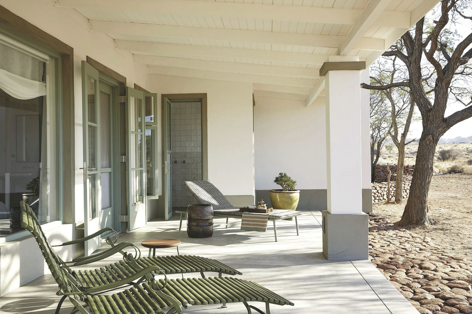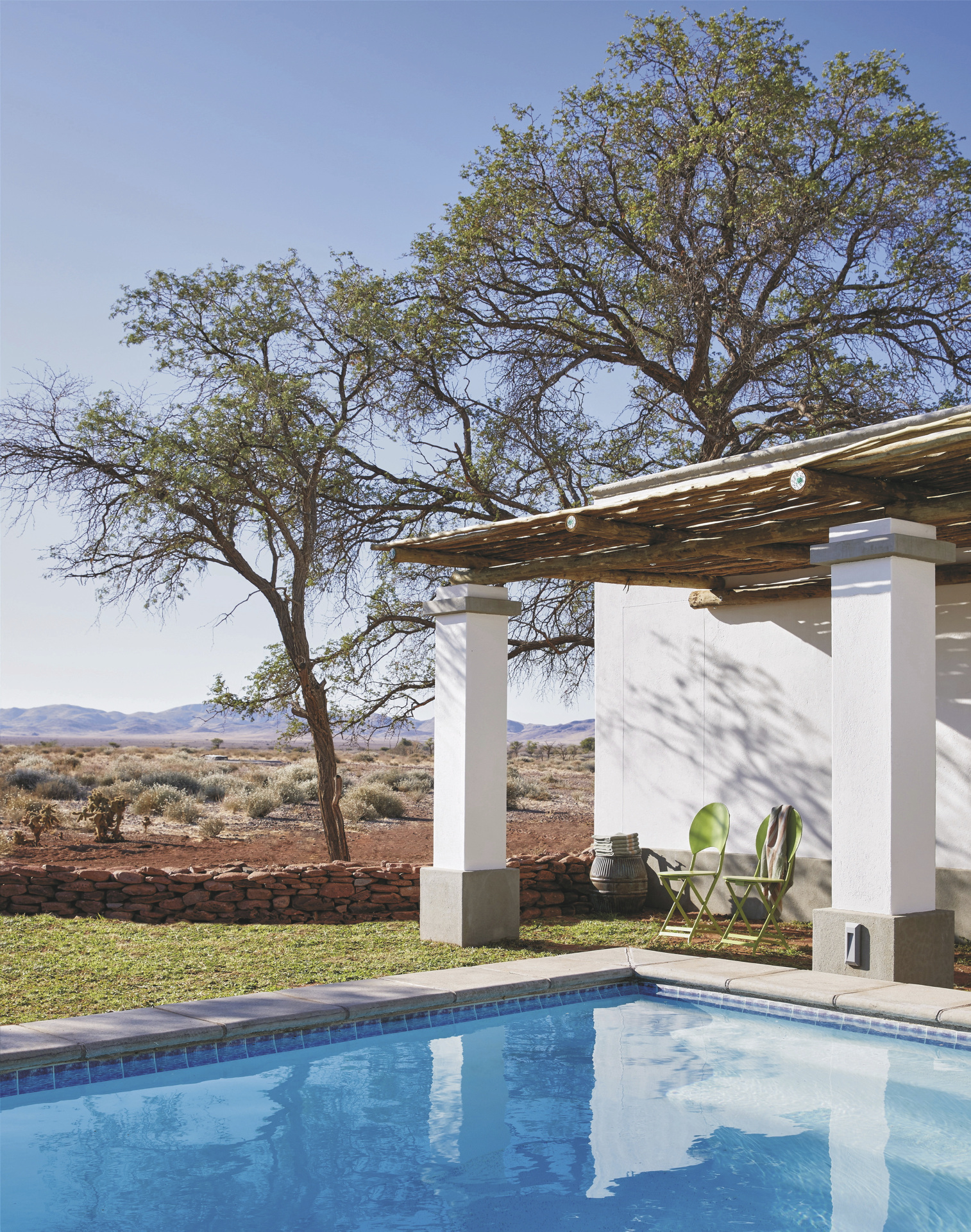 Mit Nooishof haben sich die Eigentümer einen Traum erfüllt und bieten Gästen die Möglichkeit, diesen Traum für einige Tage mit zu leben. Im gemütlichen, weitläufigen Farmhaus, etwas abseits der Suiten sind Sie zu jeder Zeit herzlich willkommen. Ob Sie auf der Suche nach einem guten Buch sind, einen anderen Blickwinkel auf die einzigartige Landschaft wünschen, Gesellschaft suchen oder ein Getränk aus dem Kühlschrank oder einen Kaffee möchten. Die Gäste und ihre Aktivitäten bestimmen den Tagesablauf. Das Frühstück wird meist erst am Vormittag serviert, mittags folgt ein leichter Imbiss und abends gesunde, typisch namibische Farmküche. Die Zutaten kommen natürlich aus dem eigenen Küchengarten. Hausgemachte Backwaren, Marmeladen sowie eigene Eier und Honig stehen auf dem Speiseplan. Suchen Sie sich im Gemüsegarten die Zutaten für Ihren Lieblingssalat aus und leisten Sie Mariza in der Küche beim Nudelnmachen Gesellschaft. Für Abkühlung und Entspannung nach einem aufregenden Vormittag in grandioser Landschaft sorgt ein kleiner Pool. Abends trifft man sich zur geselligen Runde rund um das Lagerfeuer und lässt den Tag ausklingen. Eingeschlossene Aktivitäten: Panoramafahrten, geführte Wanderungen oder E-Bike Touren. Gerne können Sie die Region auch auf eigene Faust zu Fuß oder mit dem E-Bike erkunden.