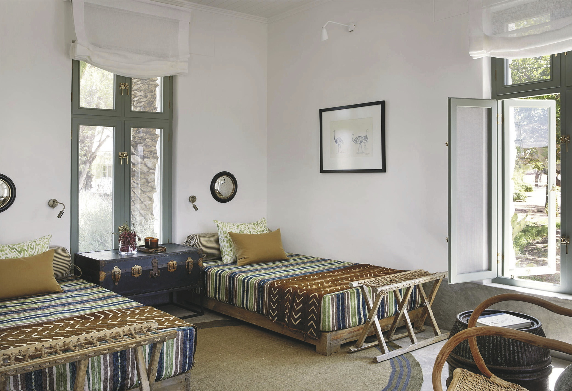 Nooishof verfügt über 4 großzügige Suiten, die absolute Ruhe und Erholung versprechen. Jede Suite ist hell und gemütlich eingerichtet und verfügt natürlich über ein eigenes Bad, aber auch über eine Klimaanlage, Kamin, Safe, Minikühlschrank, Tee-/Kaffeezubereiter, Fön und Ventilator. Von der schattigen Terrasse haben Sie einen traumhaften Blick über die Landschaft. Eine Suite ist mit 2 Schlafzimmern für Familien mit 2 Kindern geeignet.