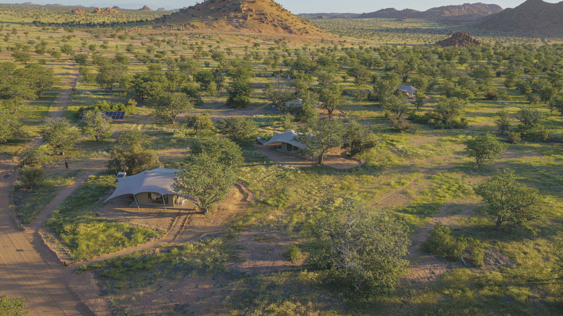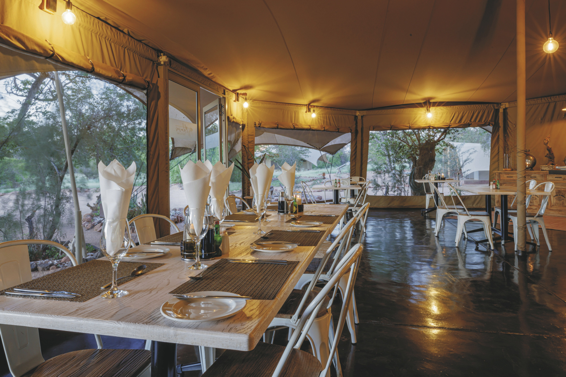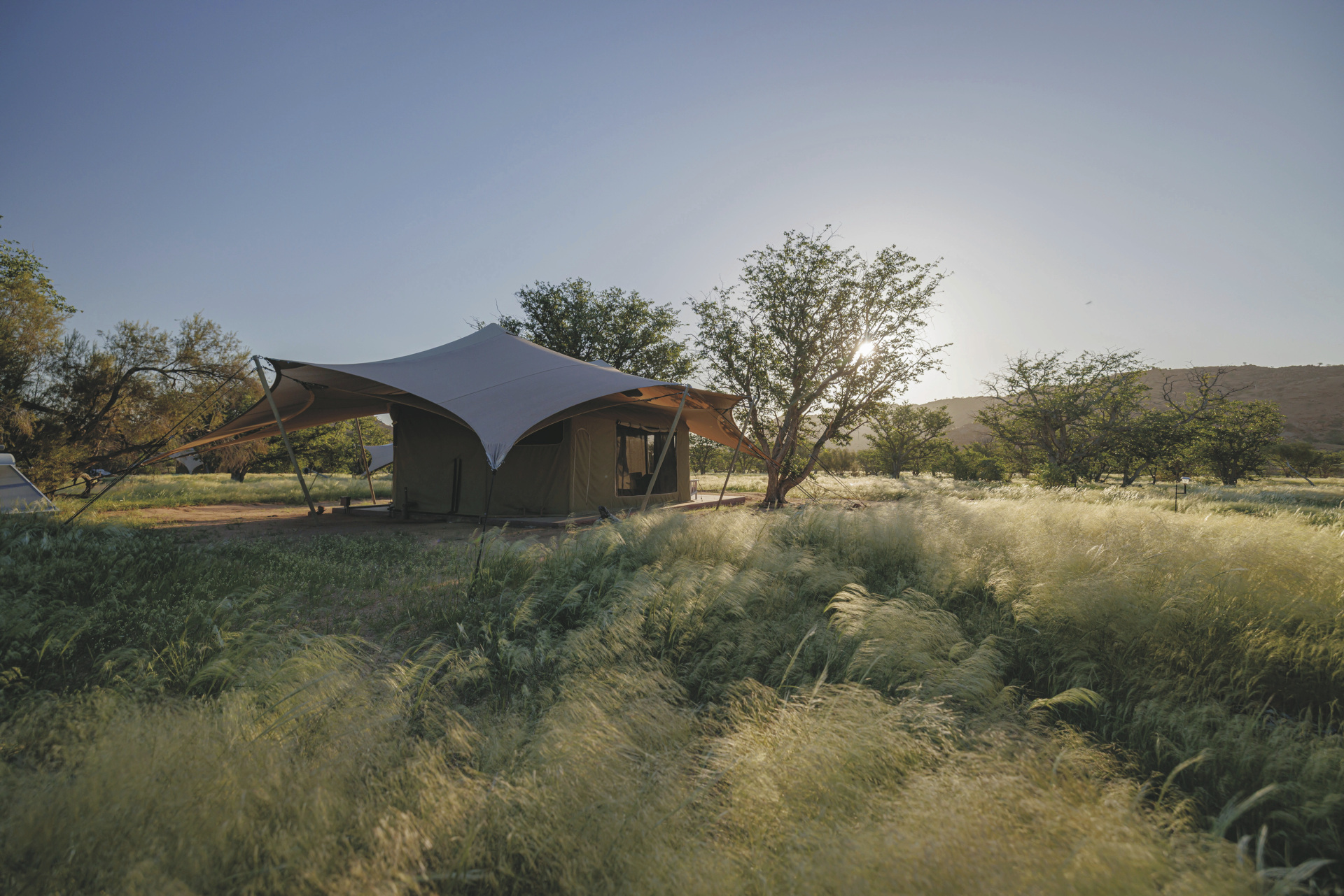 Im Hauptbereich finden Sie das große Lounge- und Speisezimmer mit der Honesty-Bar. Am Abend lodert ein gemütliches Feuer in der Feuerstelle und lockt zum Plausch. Ein herrlicher Pool bietet Erfrischung an heißen Tagen. Am Wasserloch kann man mit etwas Glück vorbeiziehendes Wild beobachten. Kostenloses WLAN im Hauptbereich. Optionale Aktivitäten: Rundfahrt zu den Sehenswürdigkeiten um Twyfelfontein, Pirschfahrt zum Aufspüren der hier lebenden seltenen Wüstenelefanten.
