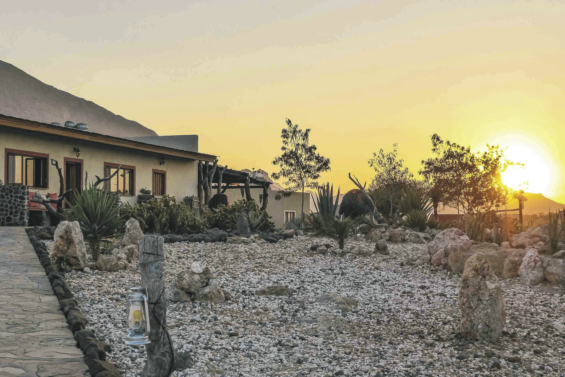 Die Lodge liegt dem höchsten Gipfel des Erongogebirges zu Füßen. Spektakuläre Sonnenuntergänge lassen den Berg in fantastischem roten Licht erscheinen. Im Haupthaus befinden sich das Restaurant, eine Lounge mit Kamin, kostenloses WLAN sowie die Bar und der Cocktail-Bereich. Die Terrasse bietet ein großartiges Panorama und Blick auf das nahe Wasserloch. Auf der Sonnenterrasse am Pool können Sie abschalten und entspannen. Am Abend lässt es sich rund um die flackernde Feuerstelle gut über die Ereignisse des Tages austauschen. Philipps Cave mit seinen Felsmalereien und die Granitformationen von Bulls Party befinden sich gleich auf der Nachbarfarm. Optionale Aktivitäten: geführte Wanderungen, markierte Wanderwege, Panoramafahrten, Besuch der Felsmalereien, Fatbike Verleih.