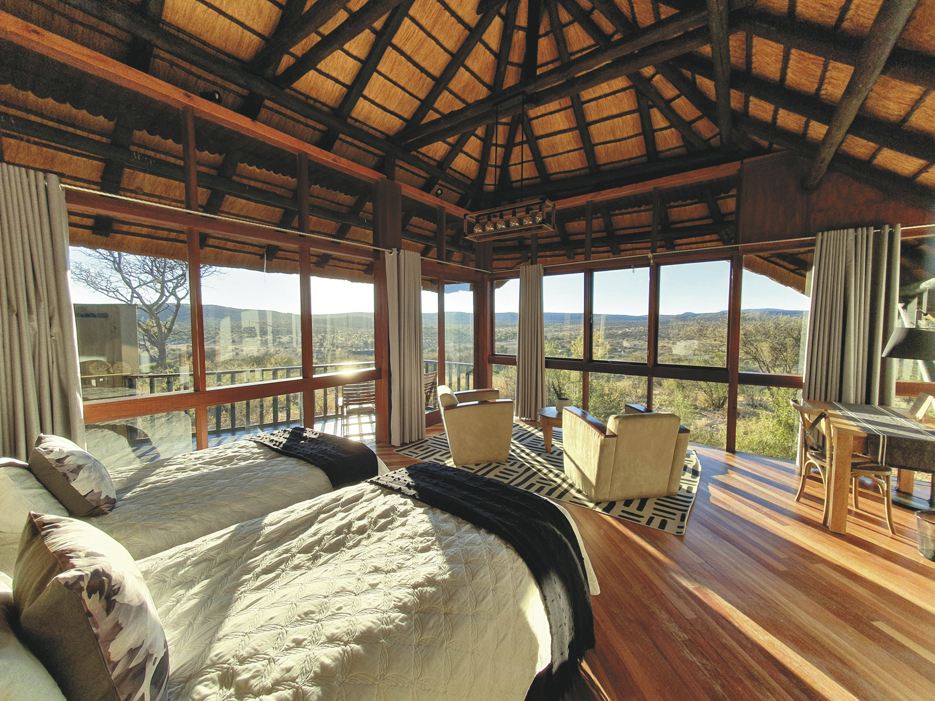 Eine einzigartige Symphonie aus Wildnis, Natur und Wellness in einer atemberaubenden Landschaft, in der Nashörner, Giraffen, Zebras, Antilopen und eine Vielzahl von Wildtieren frei umherstreifen. Ob Sie Abenteuer oder Entspannung suchen, GocheGanas ist der perfekter Start oder der gelungene Abschluss Ihrer Namibia Reise.