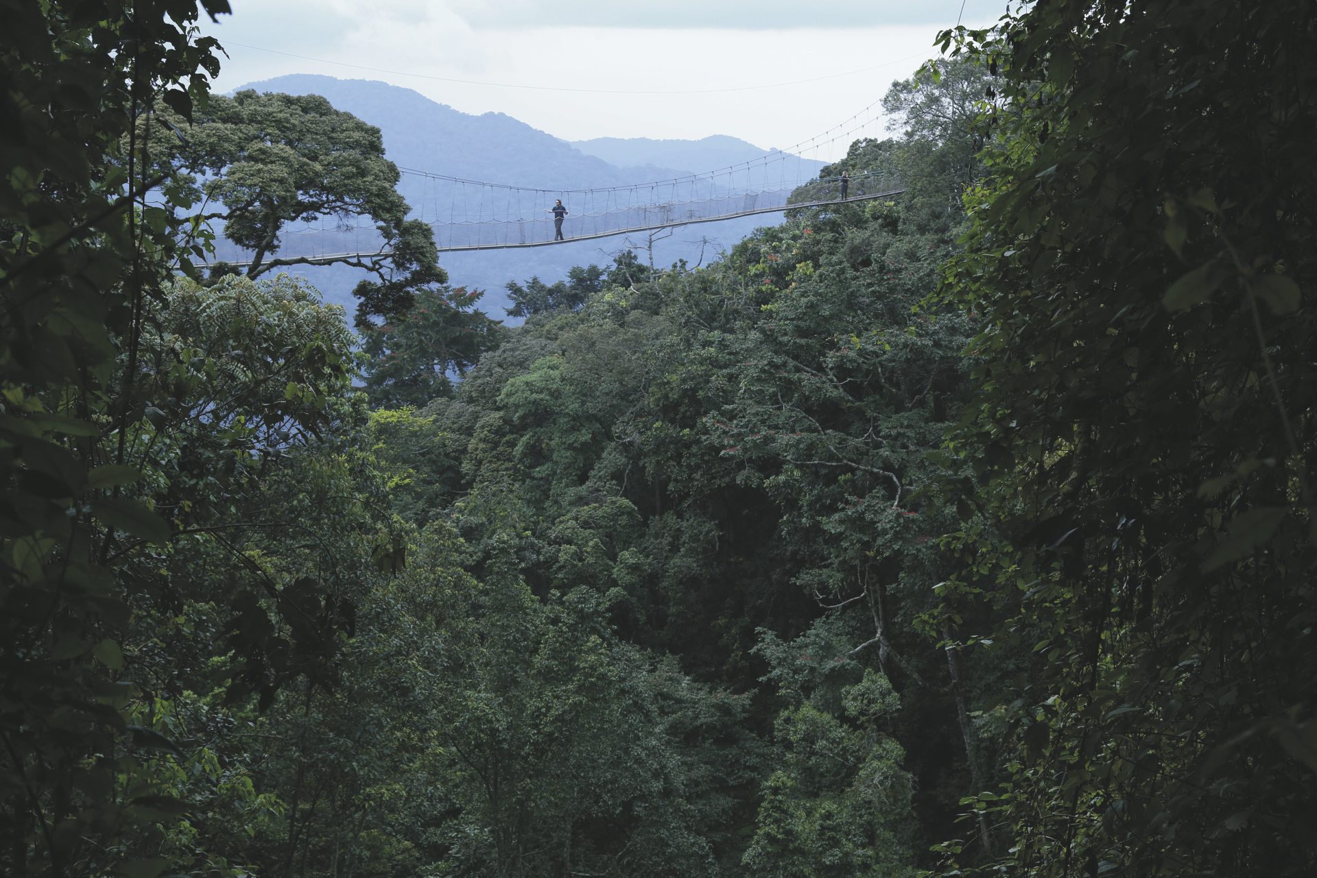 Der Nyungwe Forest ist eines der ältesten Regenwaldgebiete Afrikas. Ausgerüstet mit bequemen Wanderschuhen machen Sie sich auf die Suche nach Schimpansen. Doch nicht nur Schimpansen leben hier - die Artenvielfalt ist beeindruckend. Rund 75 Arten von Säugetieren, davon 13 Primatenarten, sind hier beheimatet. Am Nachmittag stehen optionale Ausflüge zur Wahl: Tracking zu den Colobusaffen, über die Hängebrücke durch die Baumwipfel oder eine Fußpirsch zur Vogelbeobachtung.
