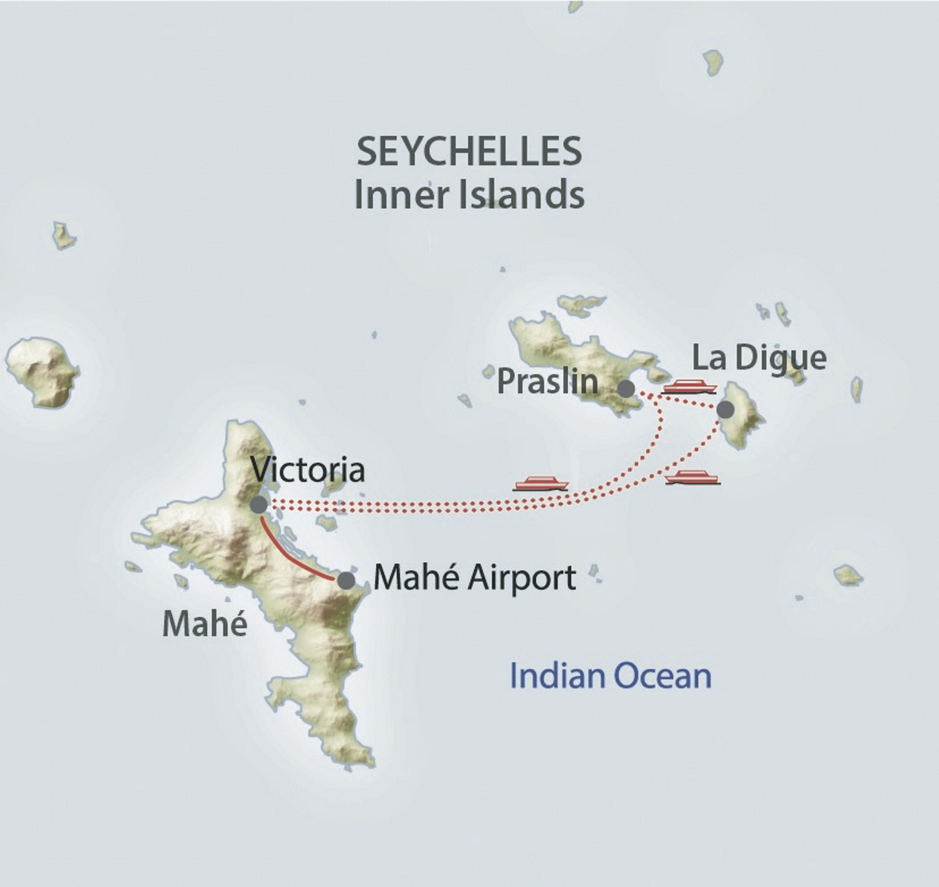 - Alle Transfers, Fährüberfahrten Mahé - Praslin - La Digue - Mahé, Übernachtungen in der gewählten Kategorie inkl. Frühstück; lokale Betreuung vor Ort.