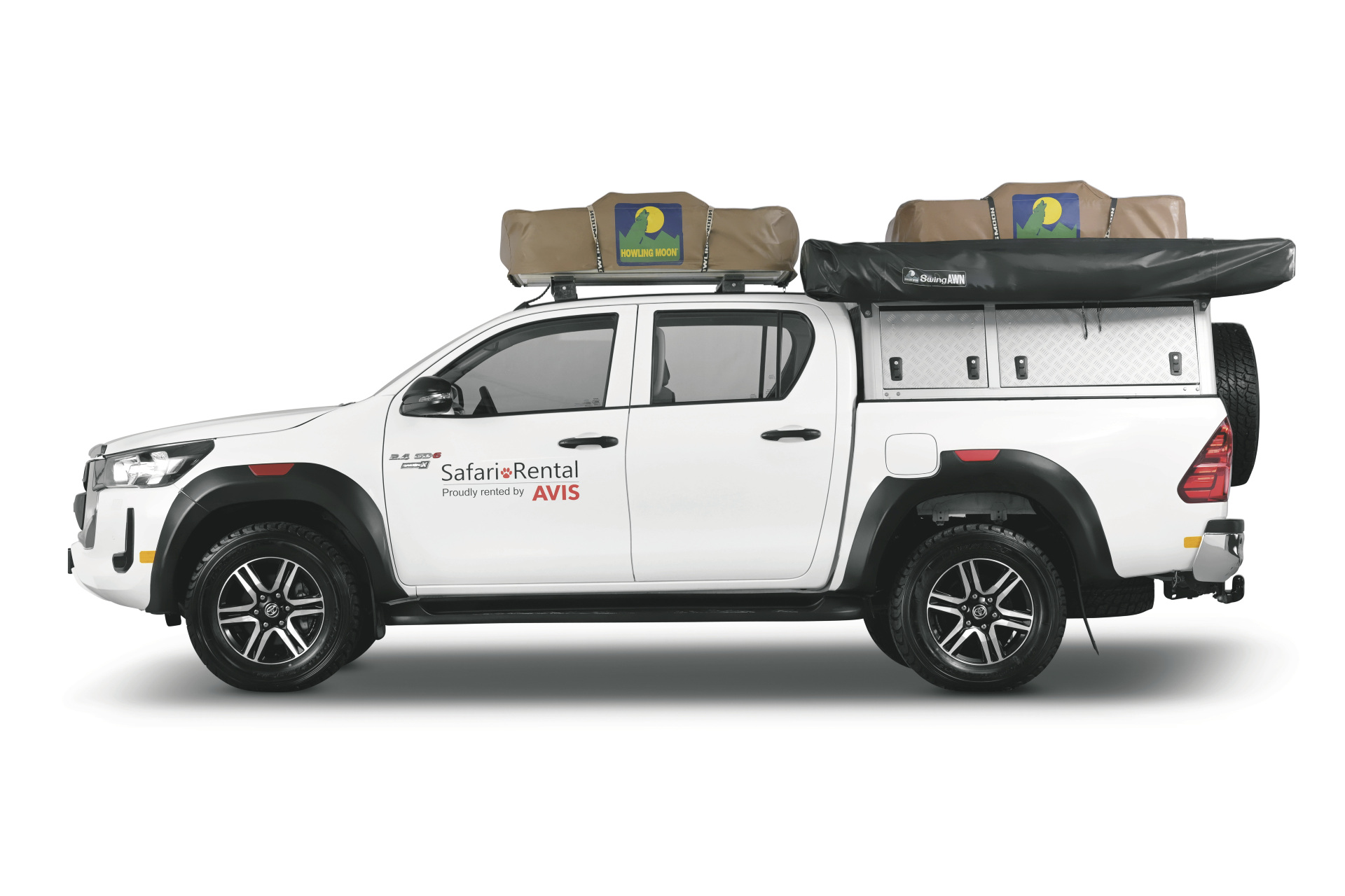 Beliebtes Modell mit geräumiger Doppelkabine und umfangreicher Ausstattung inklusive zwei großen Dachzelten. Für maximal 4 Personen.
