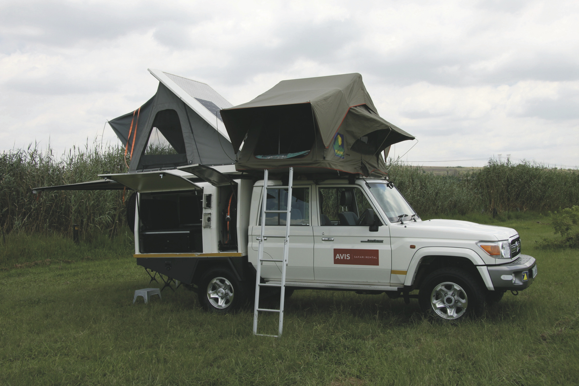 Ein robuster Allrad-Camper auch für schwieriges Gelände. Dank zwei Dachzelten geeignet für bis zu 4 Personen.