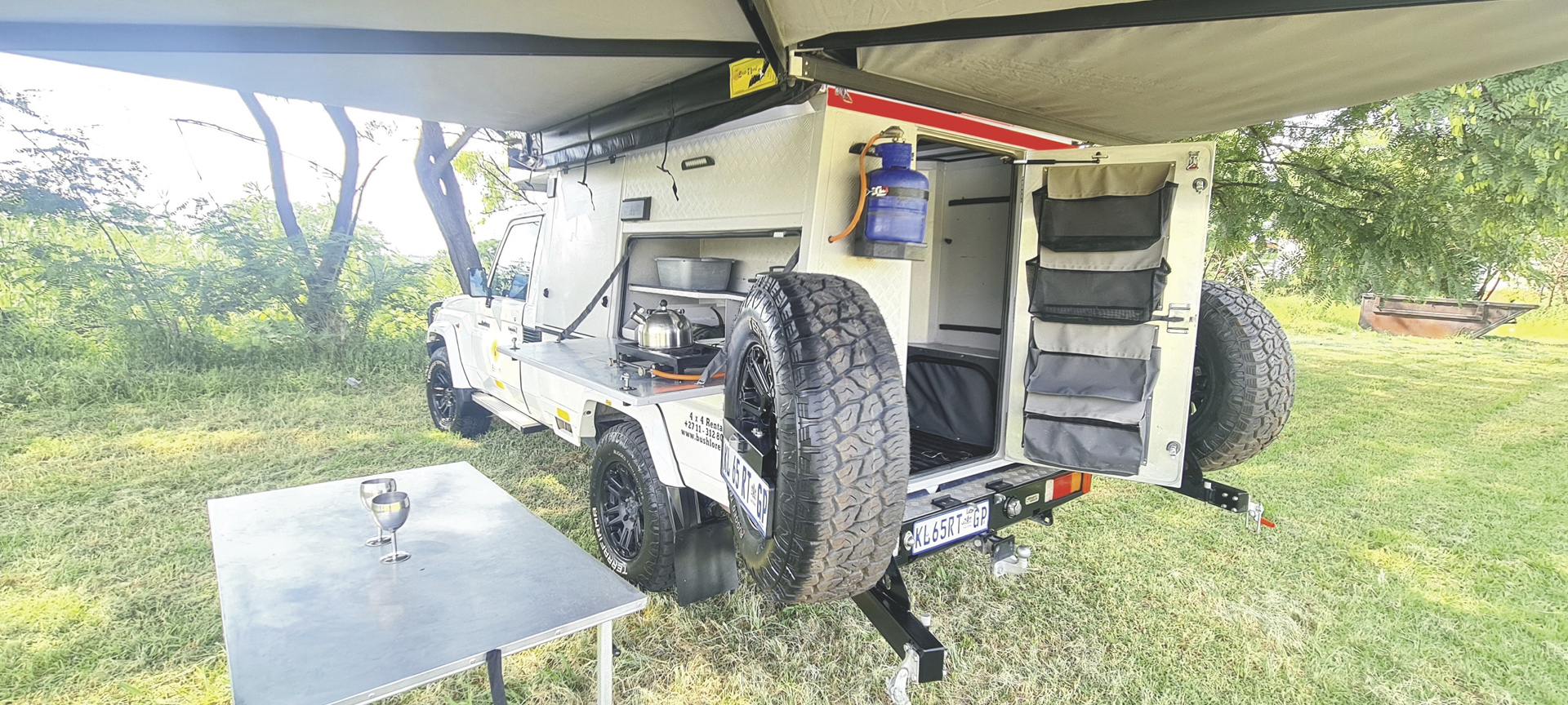 Der Toyota Landcruiser Bushcamper zählt zu den besten 4x4 Campern im südlichen Afrika. Die gut ausgestattete Campingkabine verfügt über ein Doppelbett für 2 Personen.