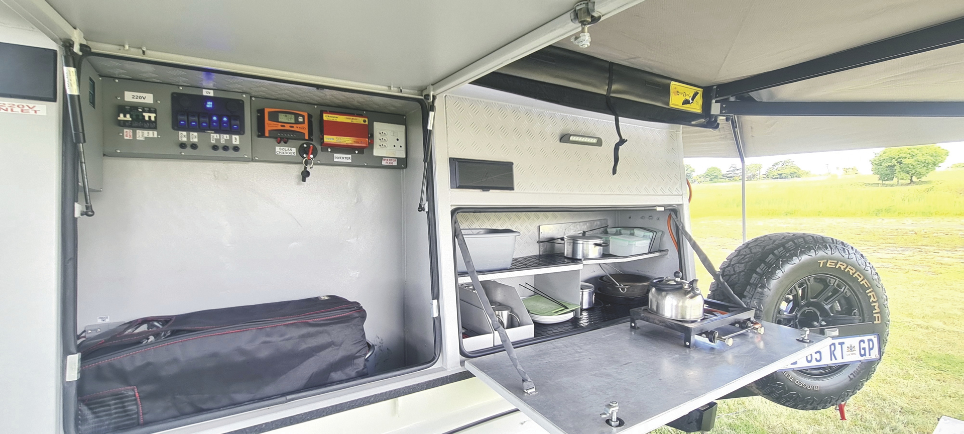 • zwei 40 l Kühlboxen (12 V)