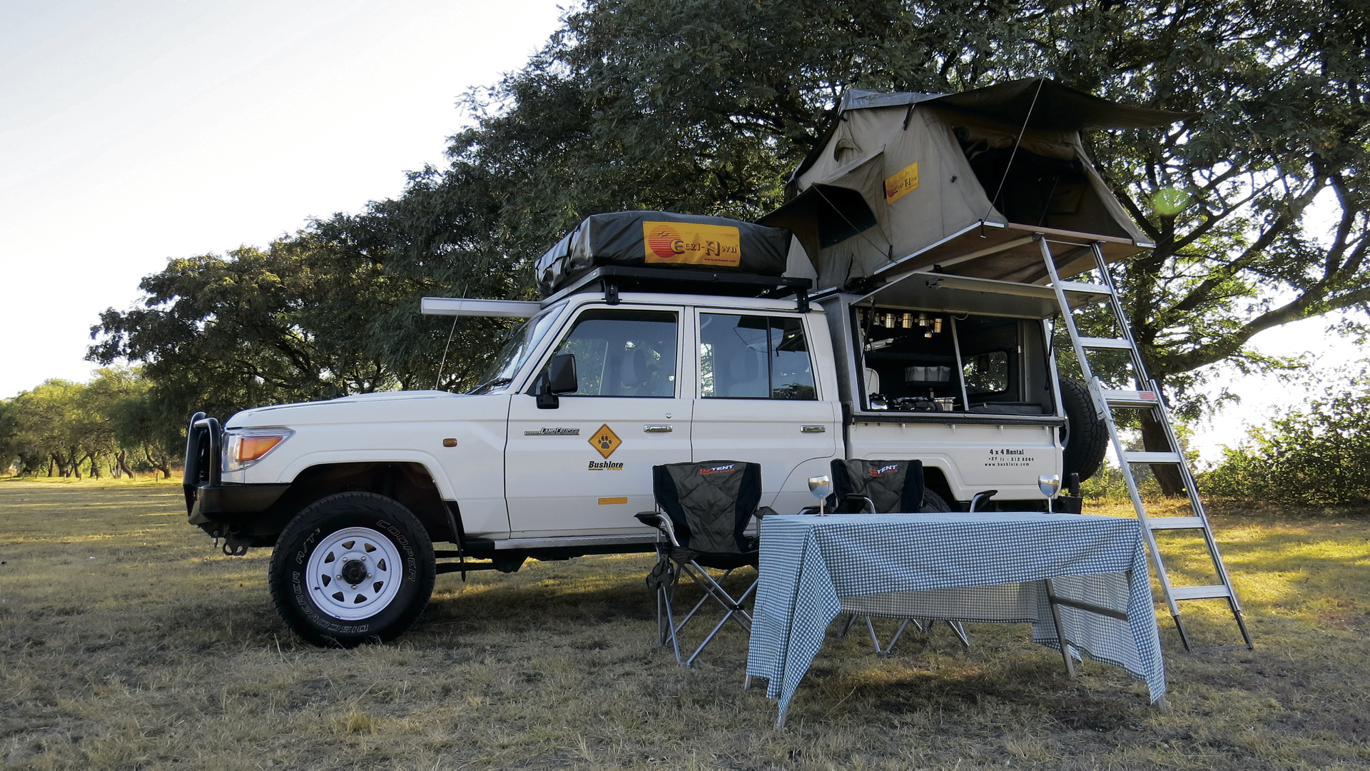 Der besonders robuste und zuverlässige Toyota Landcruiser ist der ideale Begleiter auch für anspruchsvolle Touren. Zwei große Dachzelte bieten Schlafplätze für max. 4 Personen.