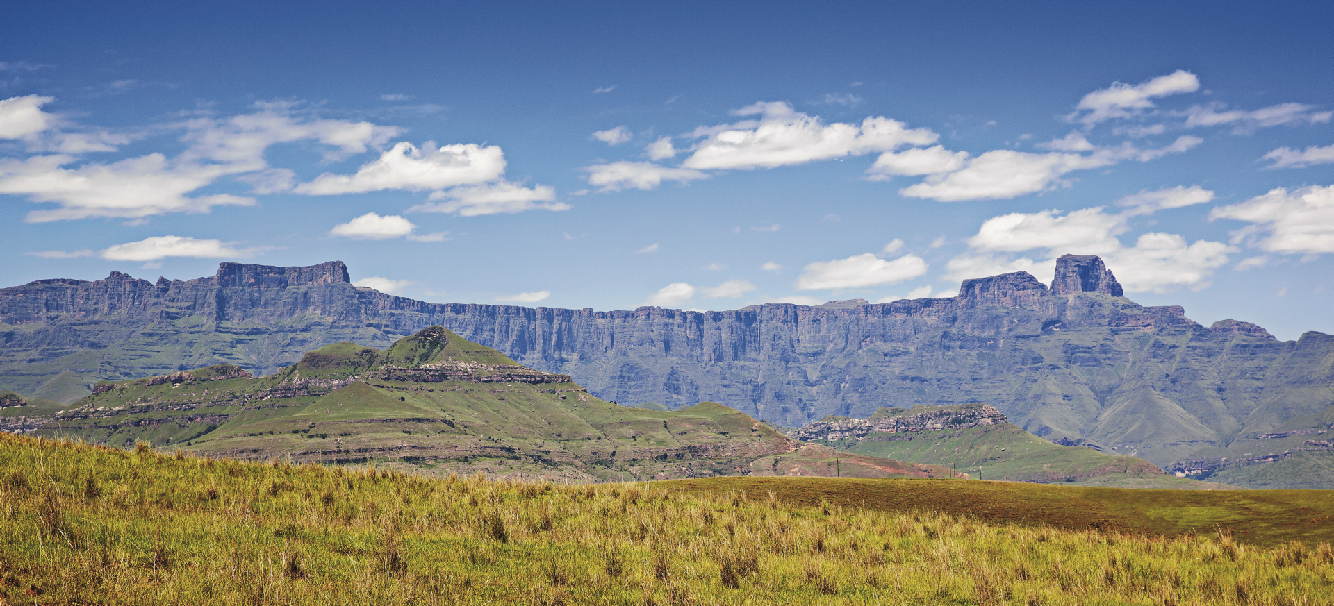 Die Bergkette erinnert an den zackigen Rücken eines Drachen. Samtiggrün und in herrlicher Bergluft liegen die Drakensberge abseits vom bunten Treiben der Großstädte Durban und Johannesburg. Das komplett von Südafrika umschlossene Königreich Lesotho bietet Ihnen Einblick in ein völlig anderes, dörfliches afrikanisches Leben.