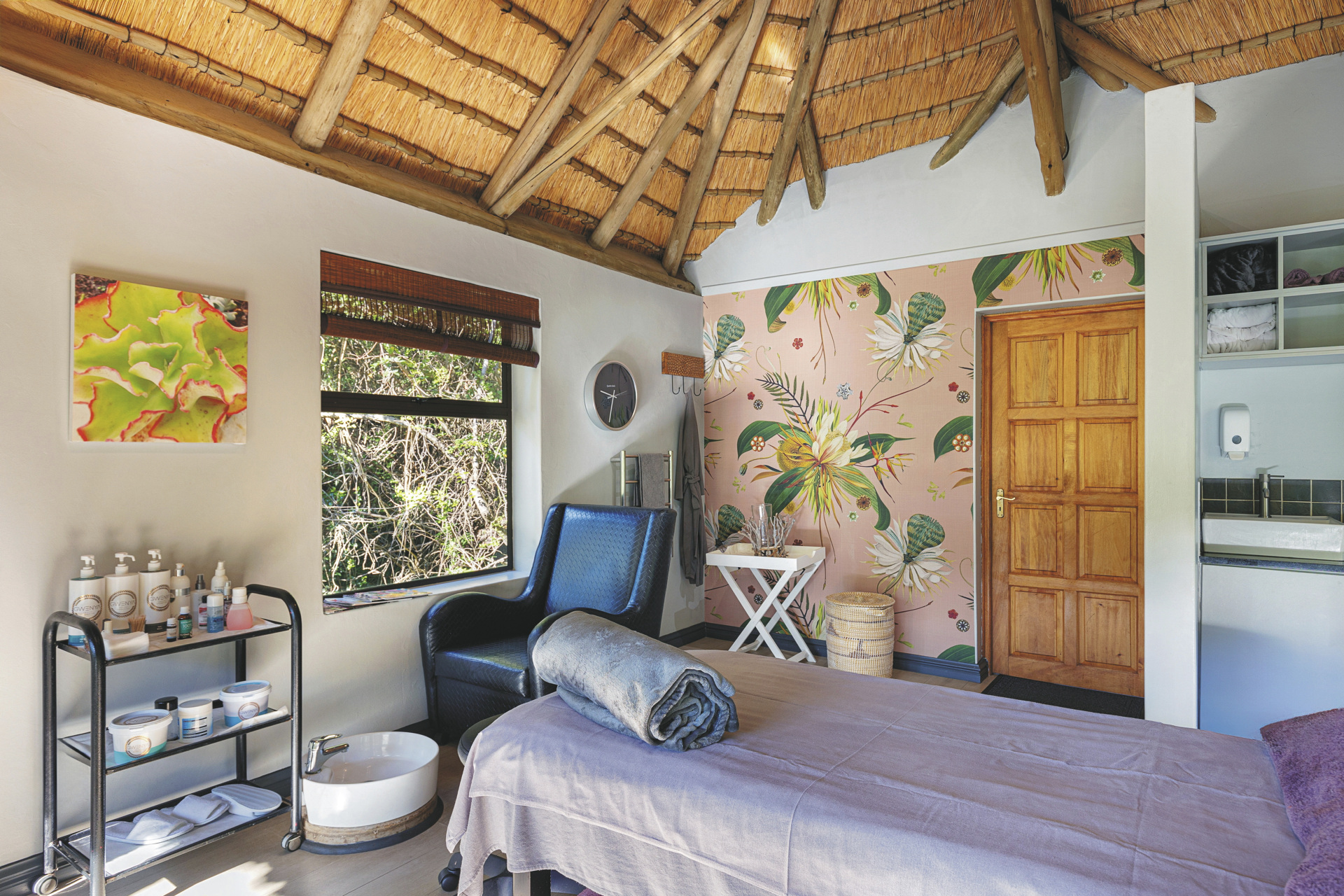 Es gibt insgesamt 55 behagliche Zimmer und Suiten in 3 Kategorien. Die Standardzimmer befinden sich im Garten, die Superior-Zimmer blicken auf einen wunderschönen Farnwald. Jedes der strohgedeckten Zimmer ist hell und modern ausgestattet und verfügt über ein eigenes Bad, Heizung, Ventilator, Tee-/Kaffeezubereiter, Terrasse oder Balkon. Die Superior-Zimmer haben zusätzlich ein Moskitonetz, eine Minibar und TV. Die geräumigen Suiten sind außerdem mit einem Kamin ausgestattet. Für Familien stehen in der Dreibettzimmer und Zimmer mit Verbindungstür zur Verfügung, aber auch Suiten mit 2 Schlaf- und Badezimmern sowie einer gemeinsamen Lounge.