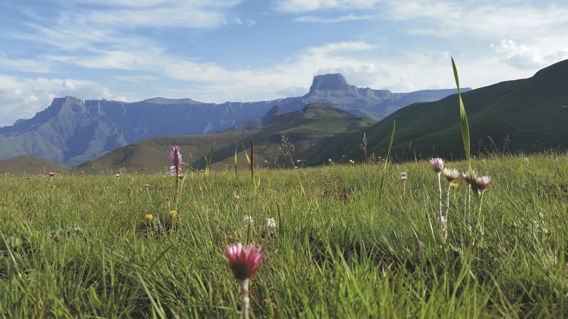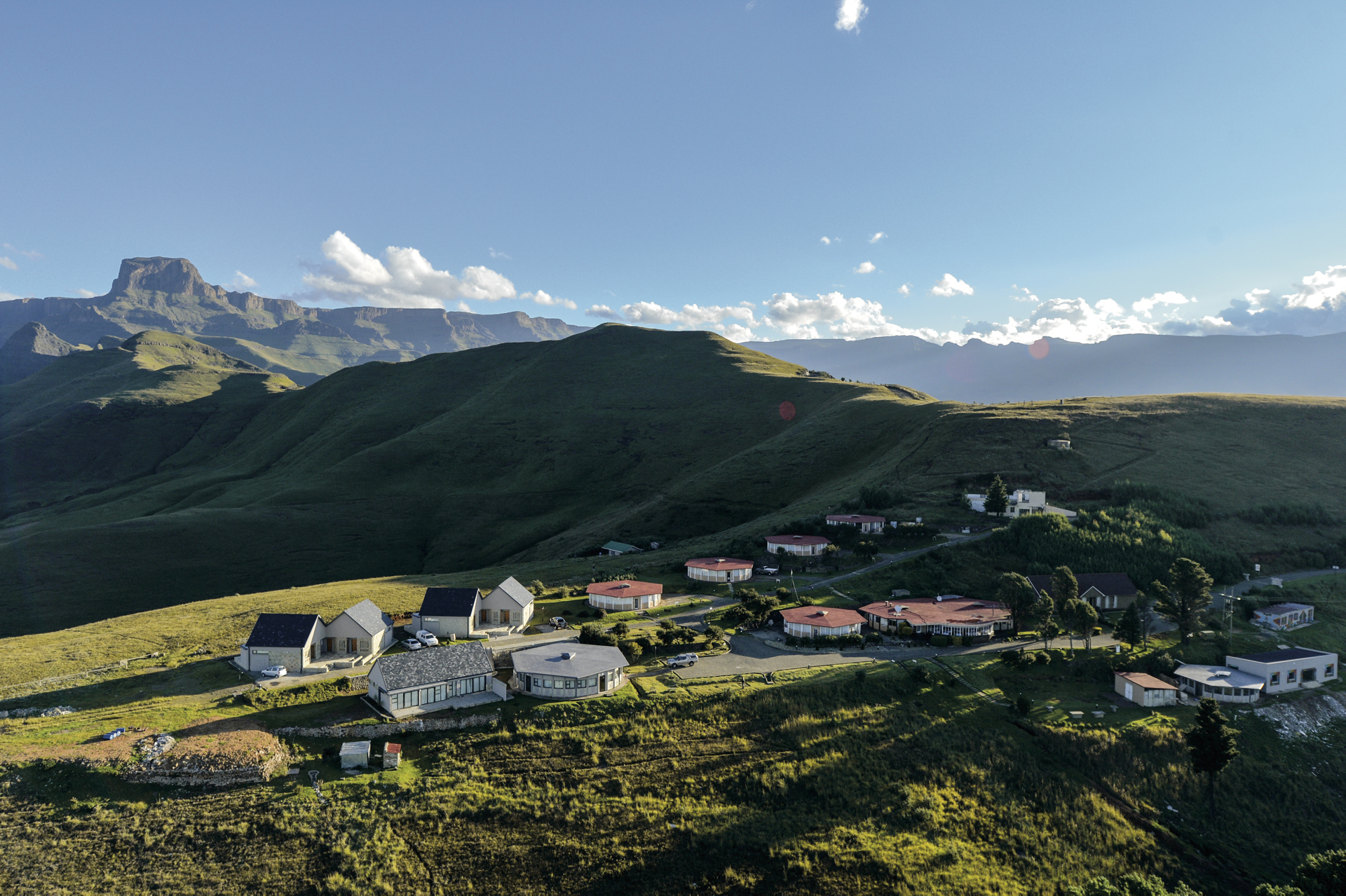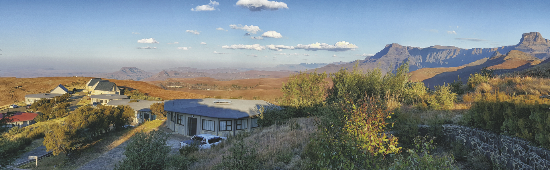 In toller Panoramalage in den nördlichen Drakensbergen, am Rande des Royal Natal Nationalparks mit Blick auf den Sentinel Peak, auf ca. 2.300 m Höhe gelegen.