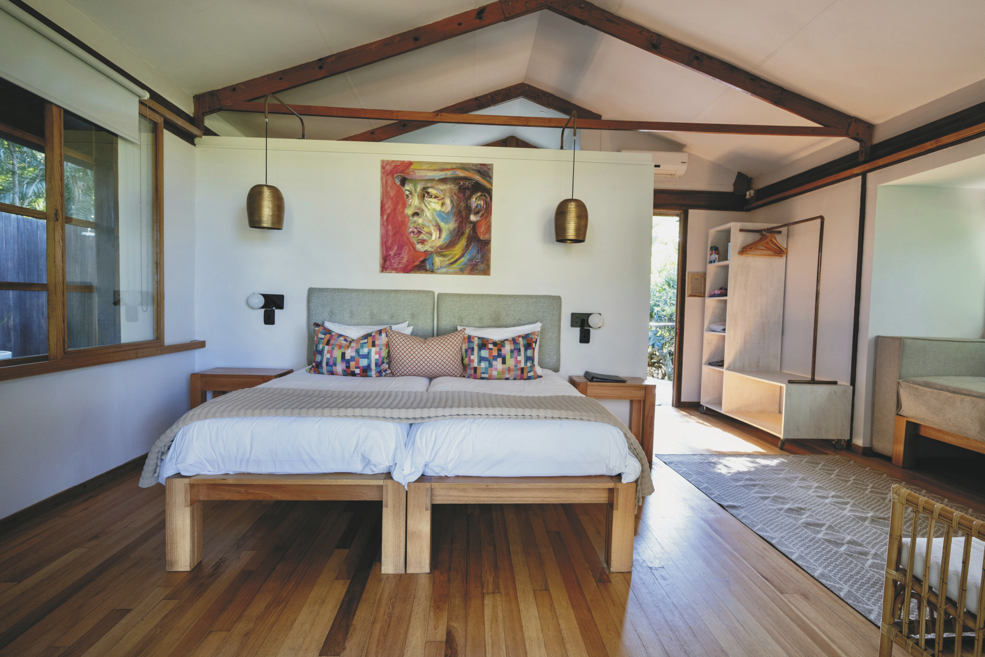 Über Holzstege erreicht man die 8 großzügigen und klassisch eingerichteten Chalets. Jedes verfügt über ein modernes Bad mit Innen- und Außendusche sowie Außenbadewanne; außerdem Safe, Tee-/Kaffeezubereiter, Minibar, Telefon, Klimaanlage, kostenloses WLAN, Fön, Ventilator und privater Terrasse. Die beiden Familienchalets verfügen je über 2 Schlafzimmer und ein gemeinsames Bad. Das Honeymoon-Chalet ist traumhaft gelegen, bietet viel Privatsphäre und eine romantische Badewanne für zwei, jedoch keine Außenwanne.