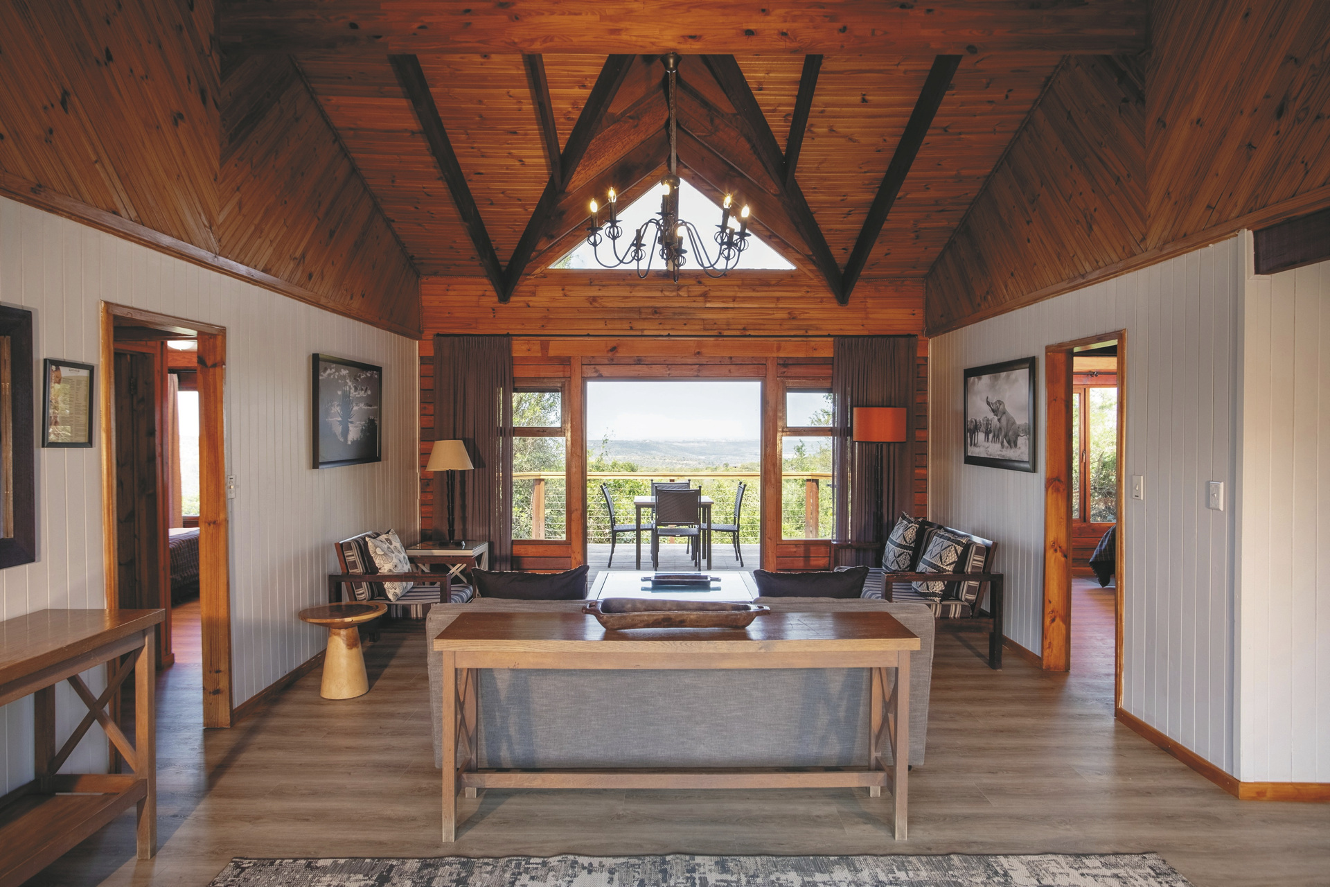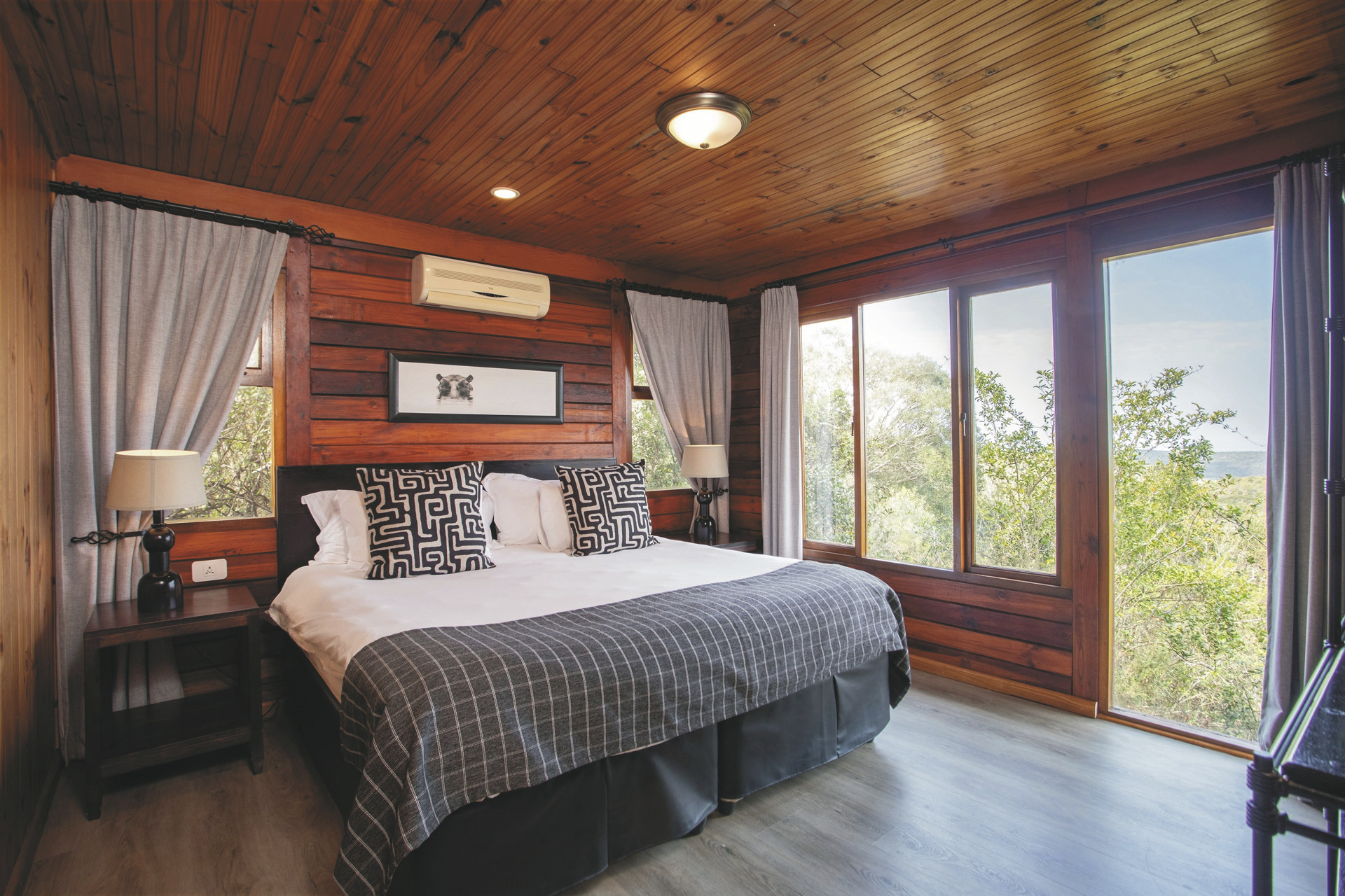 Die 24 großzügigen und gemütlich eingerichteten Holzchalets verströmen viel afrikanisches Flair. Sie verfügen alle über ein eigenes Bad, Fön, Klimaanlage, Ventilator, Tee-/Kaffeezubereiter, Safe, Telefon und kostenloses WLAN. In der eigenen Lounge können Sie gemütliche Stunden verbringen wenn die Sonne mal nicht scheint. Die große Terrasse mit Blick auf das Tal des Kariega Rivers erreichen Sie sowohl vom Schlafzimmer als auch von der Lounge. Es gibt Chalets mit einem oder mit mehreren Schlafzimmern, die ideale Lösung für Familien mit Kindern, aber auch für gemeinsam reisende Freunde. Einige Chalets haben sogar einen eigenen Plunge Pool auf der Terrasse.