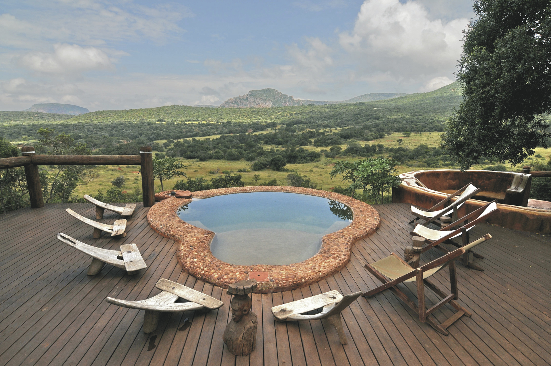 In der preisgekrönten, umweltfreundlichen Lodge verzichtet man komplett auf Elektrizität. Es gibt ein Speisezimmer, eine Lounge mit Kamin und Honesty-Bar und kostenlosem WLAN, außerdem ein Spa-Bereich und einen kleinen Pool mit Aussichtsterrasse. Etwas ganz besonderes ist das Badehaus, in dem Sie ein Wannenbad unter freiem Himmel nehmen können. Eingeschlossene Aktivitäten - 1 je Tag: Pirschfahrt oder Buschwanderung. Zahlreiche Wanderwege durchziehen das Gebiet.